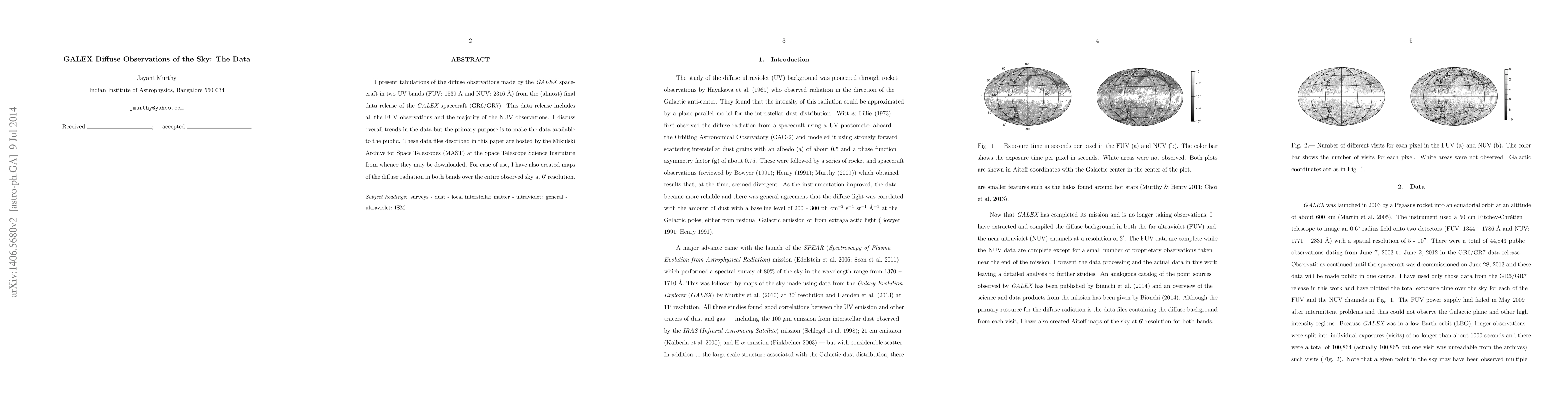 This paper tabulates the diffuse ultraviolet observations from the GALEX spacecraft in FUV and NUV bands, making the data publicly available via the Mikulski Archive for Space Telescopes. It also includes maps of the diffuse radiation at 6' resolution for ease of use.