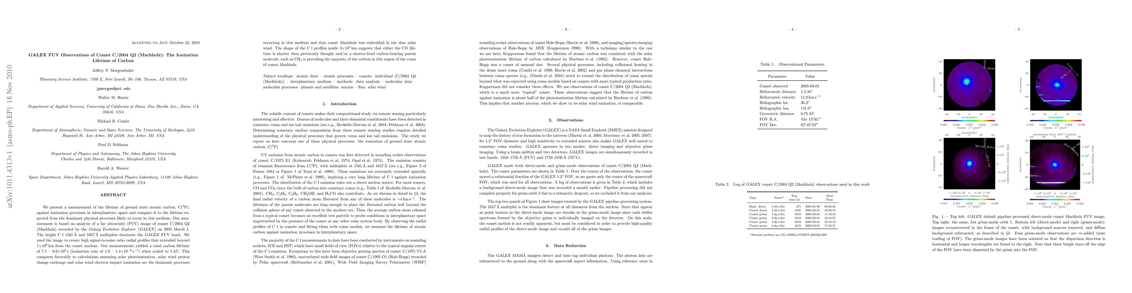 We present a measurement of the lifetime of ground state atomic carbon, C(^3P), against ionization processes in interplanetary space and compare it to the lifetime expected from the dominant physical processes likely to occur in this medium. Our measurement is based on analysis of a far ultraviolet (FUV) image of comet C/2004 Q2 (Machholz) recorded by the Galaxy Evolution Explorer (GALEX) on 2005 March 1. The bright CI 1561 A and 1657 A multiplets dominate the GALEX FUV band. We used the image to create high S/N radial profiles that extended beyond one million km from the comet nucleus. Our measurements yielded a total carbon lifetime of 7.1 -- 9.6 x 10^5 s (scaled to 1 AU). Which compares favorably to calculations assuming solar photoionization, solar wind proton change exchange and solar wind electron impact ionization are the dominant processes occurring in this medium and that comet Machholz was embedded in the slow solar wind. The shape of the CI profiles inside 3x10^5 km suggests that either the CO lifetime is shorter than previously thought and/or a shorter-lived carbon-bearing parent molecule, such as CH_4 is providing the majority of the carbon in this region of the coma of comet Machholz.