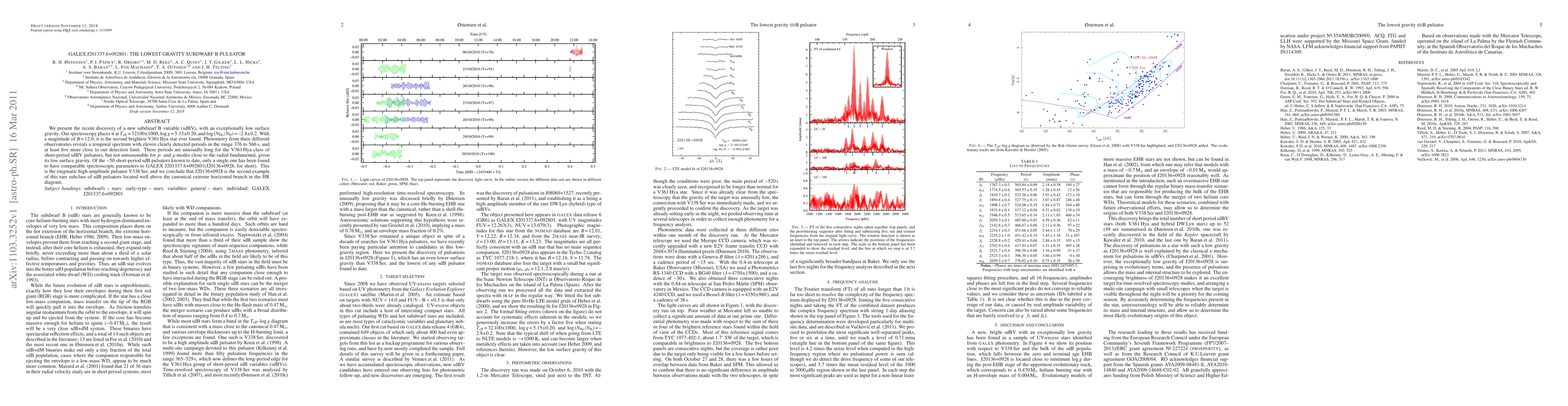 The paper reports the discovery of GALEX J201337.6+092801, a subdwarf B variable with exceptionally low surface gravity, making it the second brightest V361 Hya star. Its long pulsation periods suggest it belongs to a rare subclass of sdB pulsators with parameters similar to the high-amplitude pulsator V338 Ser.