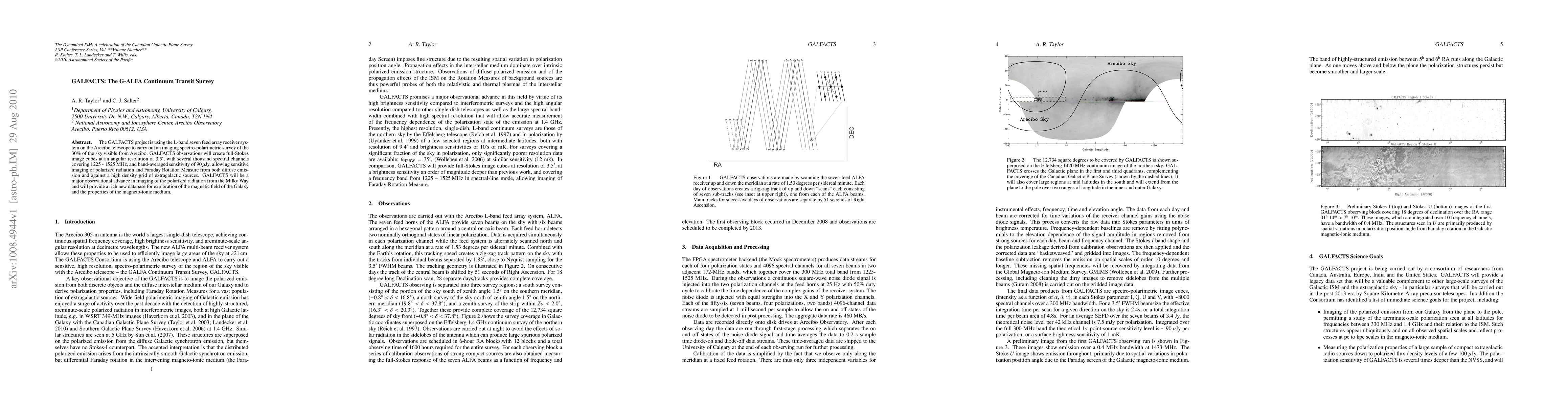 The GALFACTS project is using the L-band seven feed array receiver system on the Arecibo telescope to carry out an imaging spectro-polarimetric survey of the 30% of the sky visible from Arecibo. GALFACTS observations will create full-Stokes image cubes at an angular resolution of 3.5', with several thousand spectral channels covering 1225 - 1525 MHz, and band-averaged sensitivity of 90 uJy, allowing sensitive imaging of polarized radiation and Faraday Rotation Measure from both diffuse emission and against a high density grid of extragalactic sources. GALFACTS will be a major observational advance in imaging of the polarized radiation from the Milky Way and will provide a rich new database for exploration of the magnetic field of the Galaxy and the properties of the magneto-ionic medium.