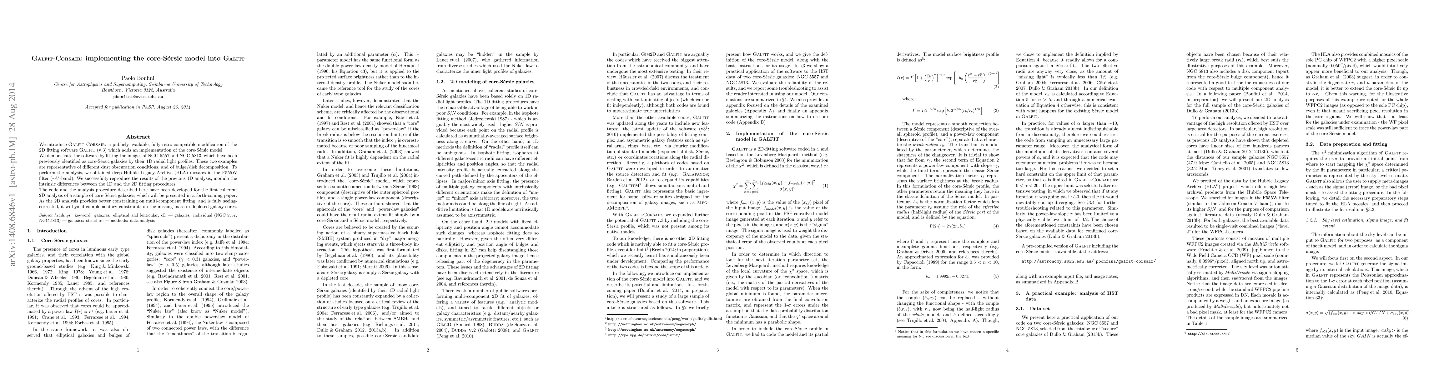 The paper introduces GALFIT-CORSAIR, a modified version of GALFIT software that includes a core-Sersic model for 2D galaxy fitting. The authors successfully test it on NGC 5557 and NGC 5813, demonstrating its ability to reproduce previous 1D analysis results, albeit with inherent 1D-2D procedure differences. This tool aims to enhance the 2D analysis of core-Sersic galaxies, offering better constraints for multi-component fitting and seeing corrections, which will provide new insights into missing mass in galaxy cores.