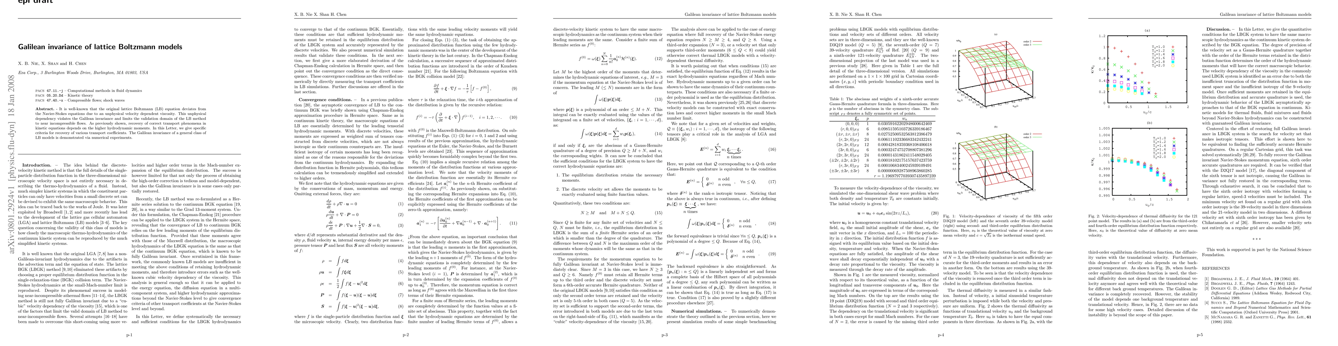 It is well-known that the original lattice Boltzmann (LB) equation deviates from the Navier-Stokes equations due to an unphysical velocity dependent viscosity. This unphysical dependency violates the Galilean invariance and limits the validation domain of the LB method to near incompressible flows. As previously shown, recovery of correct transport phenomena in kinetic equations depends on the higher hydrodynamic moments. In this Letter, we give specific criteria for recovery of various transport coefficients. The Galilean invariance of a general class of LB models is demonstrated via numerical experiments.