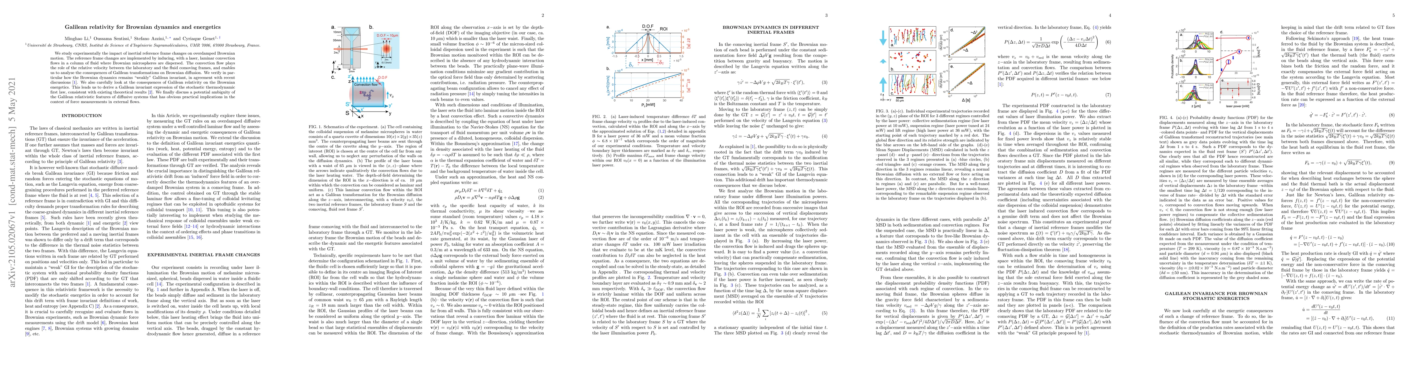 We study experimentally the impact of inertial reference frame changes on overdamped Brownian motion. The reference frame changes are implemented by inducing, with a laser, laminar convection flows in a column of fluid where Brownian microspheres are dispersed. The convection flow plays the role of the relative velocity between the laboratory and the fluid comoving frames, and enables us to analyse the consequences of Galilean transformations on Brownian diffusion. We verify in particular how the Brownian dynamics remains "weakly" Galilean invariant, in agreement with recent discussions. We also carefully look at the consequences of Galilean relativity on the Brownian energetics. This leads us to derive a Galilean invariant expression of the stochastic thermodynamic first law, consistent with existing theoretical results. We finally discuss a potential ambiguity of the Galilean relativistic features of diffusive systems that has obvious practical implications in the context of force measurements in external flows.