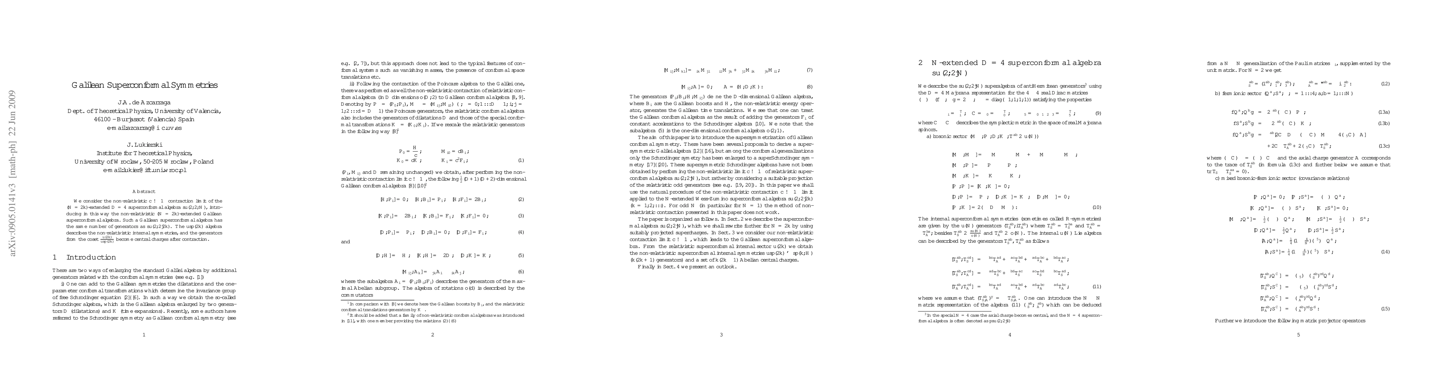 This paper explores the non-relativistic limit of the D=4 superconformal algebra su(2,2;N) by considering the c -> ∞ contraction, resulting in the Galilean superconformal algebra with the same generator count as su(2,2|2k). The usp(2k) algebra governs non-relativistic internal symmetries, while the u(2k)/usp(2k) coset's generators transform into central charges.