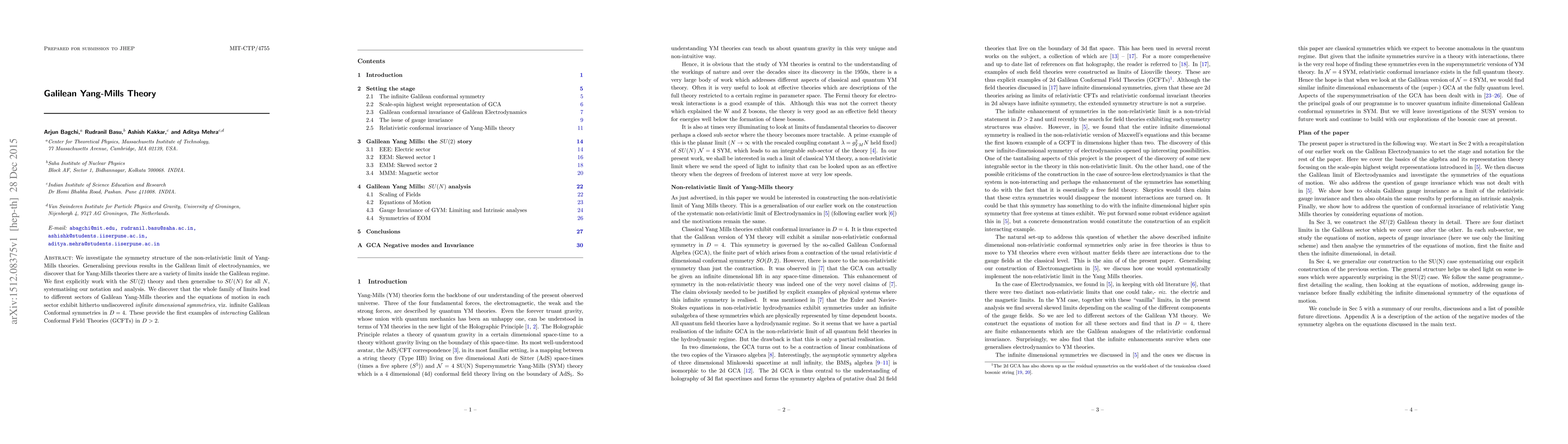 This paper explores the symmetry structure of the non-relativistic limit of Yang-Mills theories, discovering multiple Galilean limits within the regime. It identifies infinite dimensional symmetries, specifically infinite Galilean Conformal symmetries in $D=4$, leading to the first examples of interacting Galilean Conformal Field Theories in dimensions greater than two.