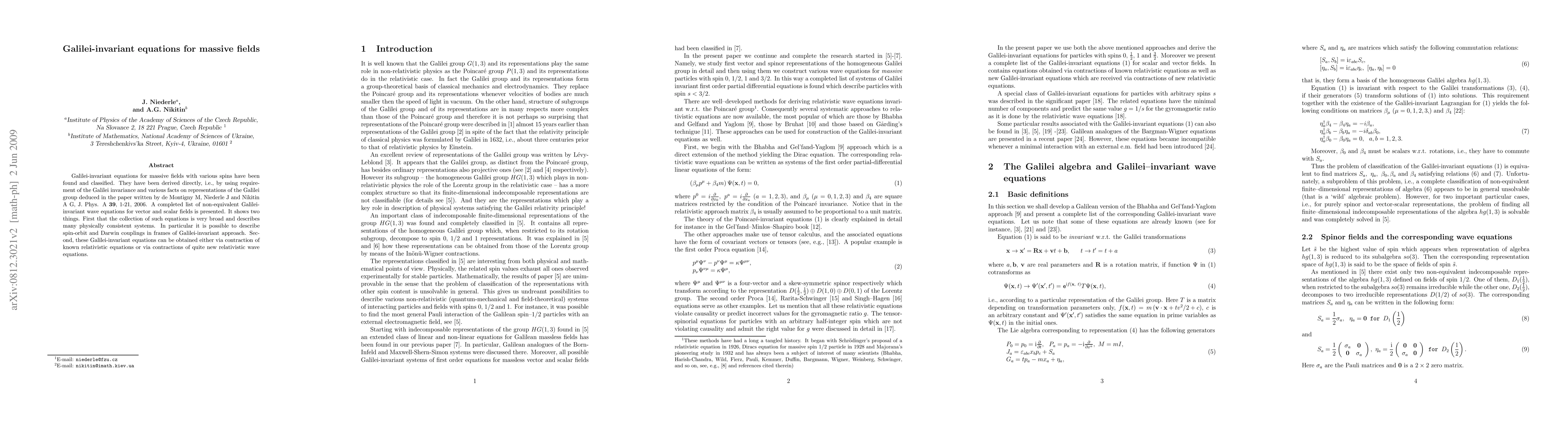 This paper presents a comprehensive classification of Galilei-invariant equations for massive fields of various spins, derived using the Galilei invariance requirement. It shows the broad applicability of these equations in describing physically consistent systems, including spin-orbit and Darwin couplings, and their derivation from both known relativistic equations and new relativistic wave equations.