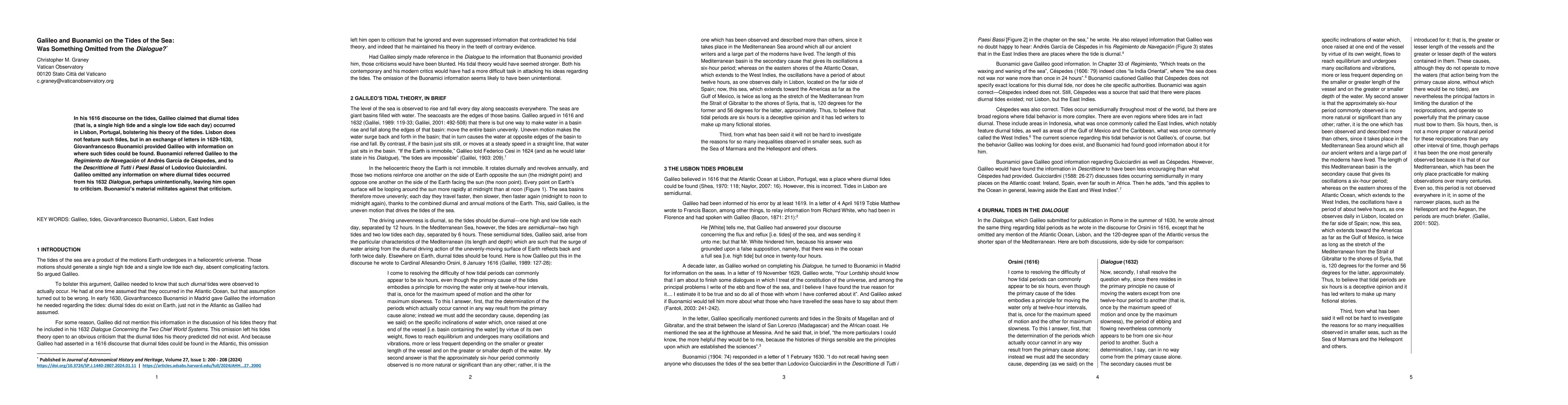 This paper explores Galileo's 1616 claim about diurnal tides in Lisbon, noting the discrepancy with Buonamici's 1629-1630 correspondence providing alternative locations for such tides. It argues that Galileo's omission of this information in his 1632 Dialogue, possibly due to oversight, invites criticism, which Buonamici's later references could have addressed.