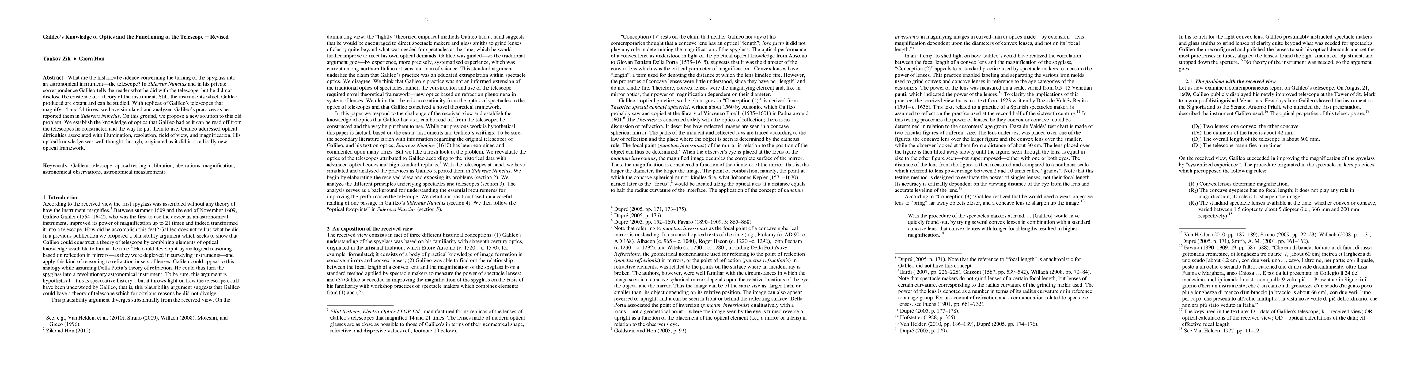 This paper revises historical understanding of Galileo's knowledge of optics and telescope construction, revealing his sophisticated optical insights through the telescopes he built and used, addressing issues like illumination and resolution, and proposing a new solution to the longstanding debate on his optical theory.