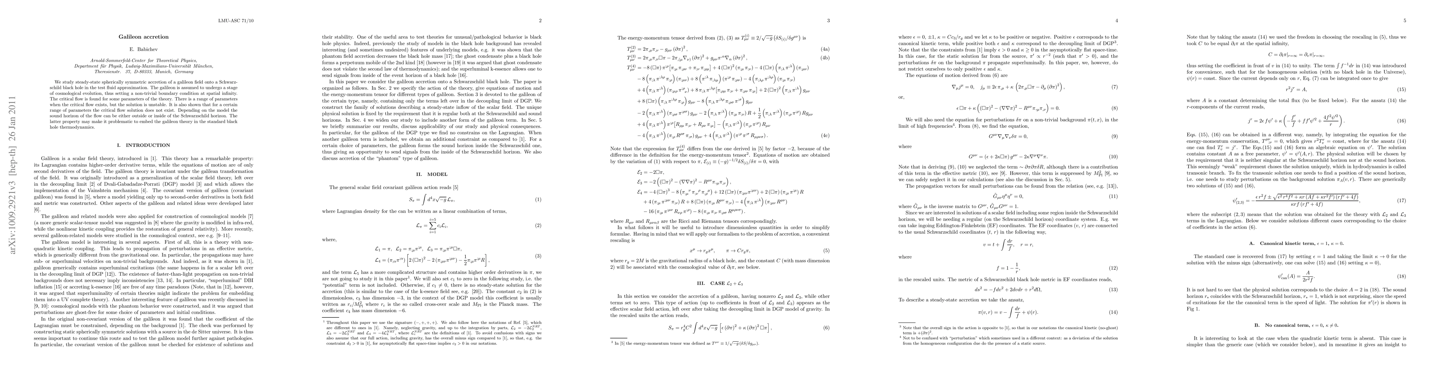 This paper investigates the steady-state accretion of a galileon field onto a Schwarzschild black hole, revealing a critical flow under certain parameters. However, the solution is unstable within the identified parameter range, and for other parameters, the critical flow does not exist, complicating the embedding of the theory in standard black hole thermodynamics.