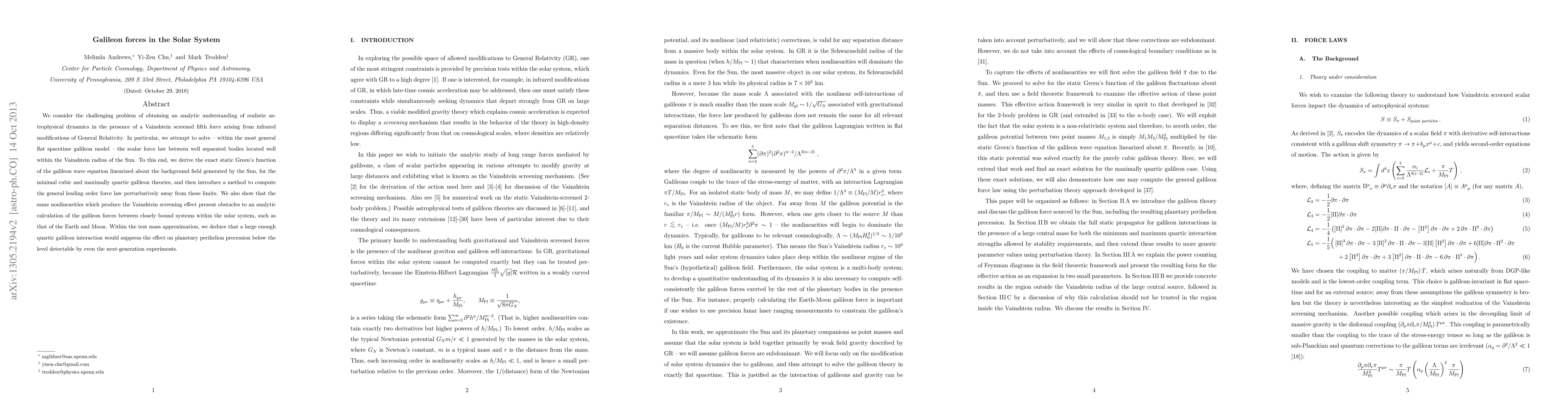 We consider the challenging problem of obtaining an analytic understanding of realistic astrophysical dynamics in the presence of a Vainshtein screened fifth force arising from infrared modifications of General Relativity. In particular, we attempt to solve -- within the most general flat spacetime galileon model -- the scalar force law between well separated bodies located well within the Vainshtein radius of the Sun. To this end, we derive the exact static Green's function of the galileon wave equation linearized about the background field generated by the Sun, for the minimal cubic and maximally quartic galileon theories, and then introduce a method to compute the general leading order force law perturbatively away from these limits. We also show that the same nonlinearities which produce the Vainshtein screening effect present obstacles to an analytic calculation of the galileon forces between closely bound systems within the solar system, such as that of the Earth and Moon. Within the test mass approximation, we deduce that a large enough quartic galileon interaction would suppress the effect on planetary perihelion precession below the level detectable by even the next-generation experiments.
