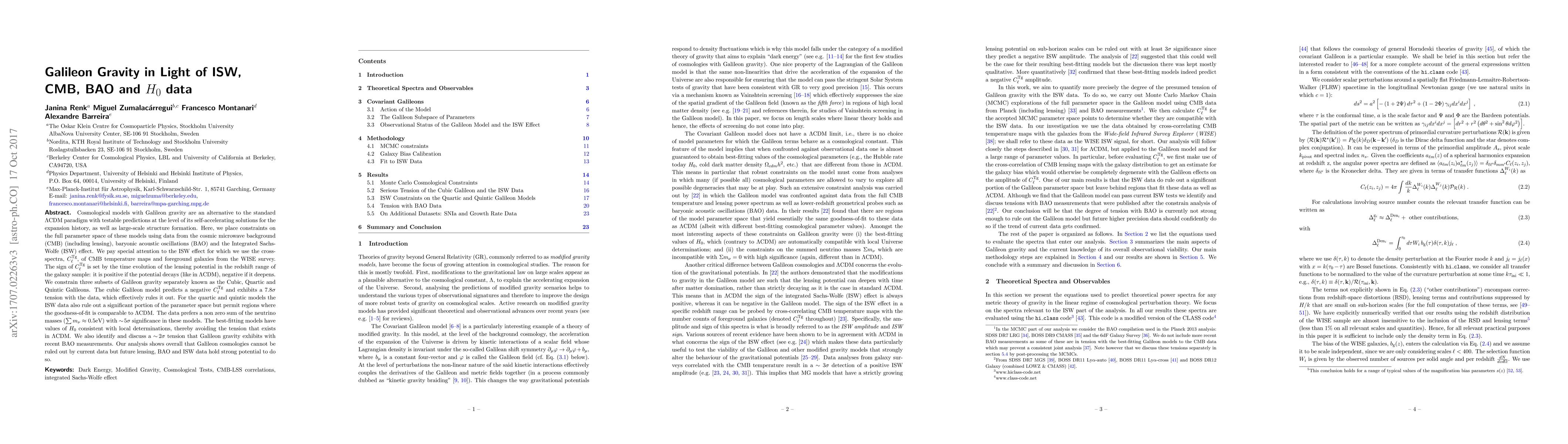 This study tests constraints on Galileon gravity models using CMB, BAO, ISW, and H0 data, finding that cubic Galileon models are ruled out, while quartic and quintic models show some tension with recent measurements but can be consistent with local determinations of H0.