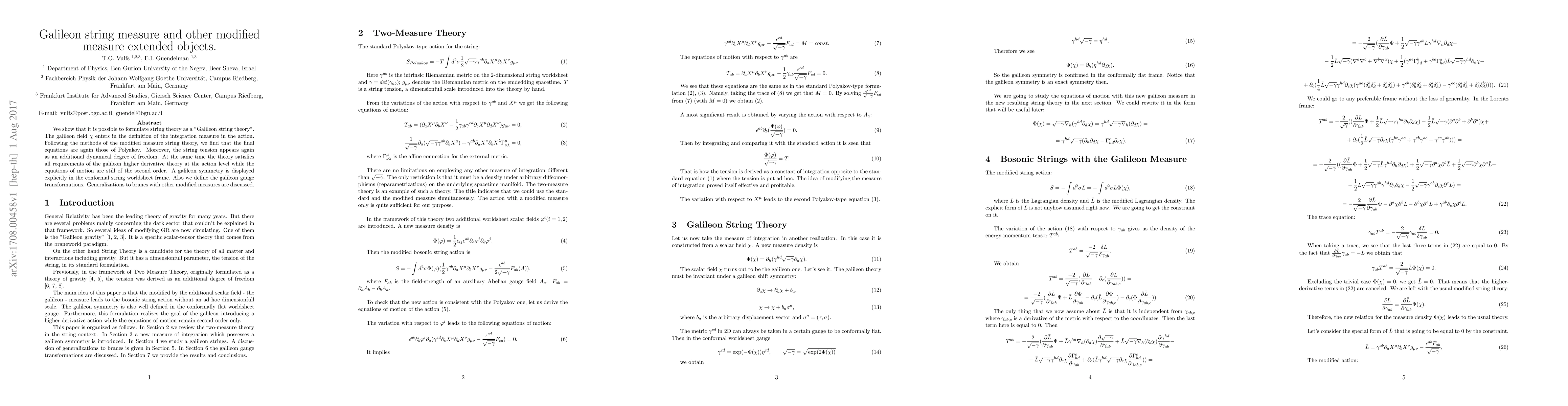 This paper formulates string theory with a "Galileon string theory" where the galileon field $\chi$ modifies the integration measure in the action. The resulting equations of motion remain second-order and exhibit galileon symmetry, while generalizing to branes with other modified measures.
