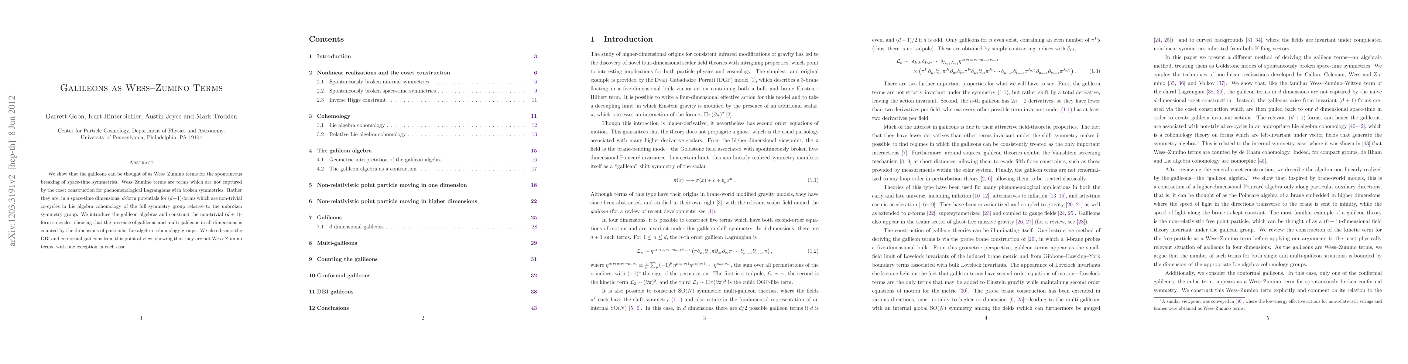 The paper introduces a novel perspective on galileons, viewing them as Wess-Zumino terms, and extends this analysis to multi-galileon and conformal galileon cases, as well as DBI galileons.