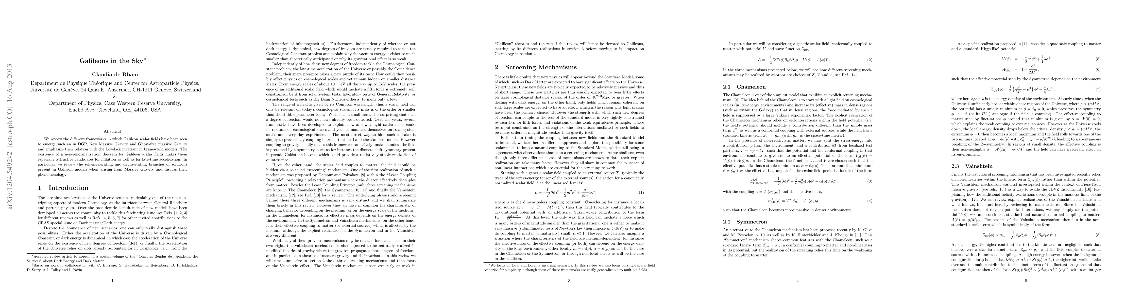 We review the different frameworks in which Galileon scalar fields have been seen to emerge such an in DGP, New Massive Gravity and Ghost-free massive Gravity and emphasize their relation with the Lovelock invariant in braneworld models. The existence of a non-renormalization theorem for Galileon scalar fields makes them especially attractive candidates for inflation as well as for late-time acceleration. In particular we review the self-accelerating and degravitating branches of solutions present in Galileon models when arising from Massive Gravity and discuss their phenomenology.