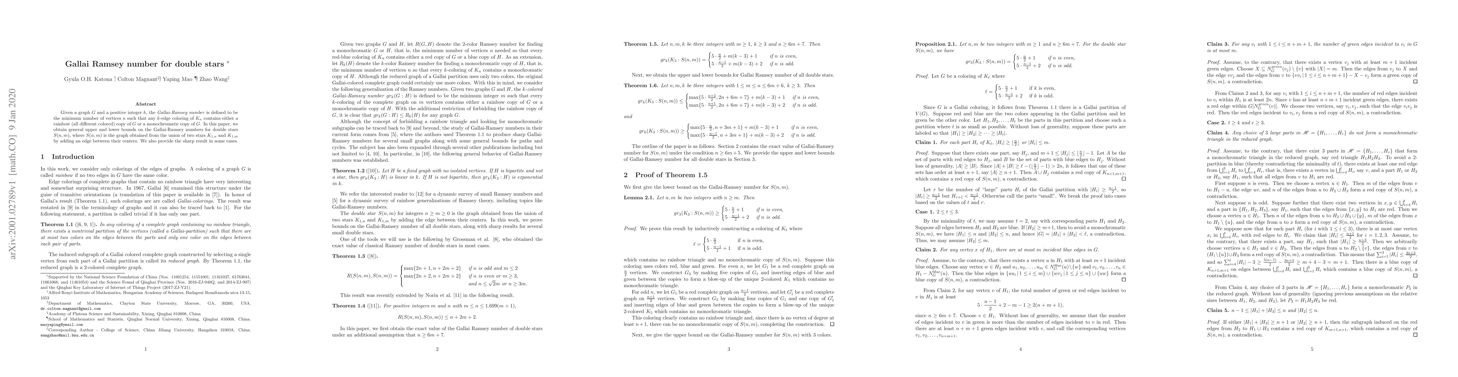 This paper investigates the Gallai-Ramsey number for double stars $S(n,m)$, determining general upper and lower bounds for these numbers, which represent the minimum vertex count ensuring a $k$-edge coloring of $K_n$ contains either a rainbow or monochromatic copy of $S(n,m)$. The authors also achieve sharp results for specific cases.