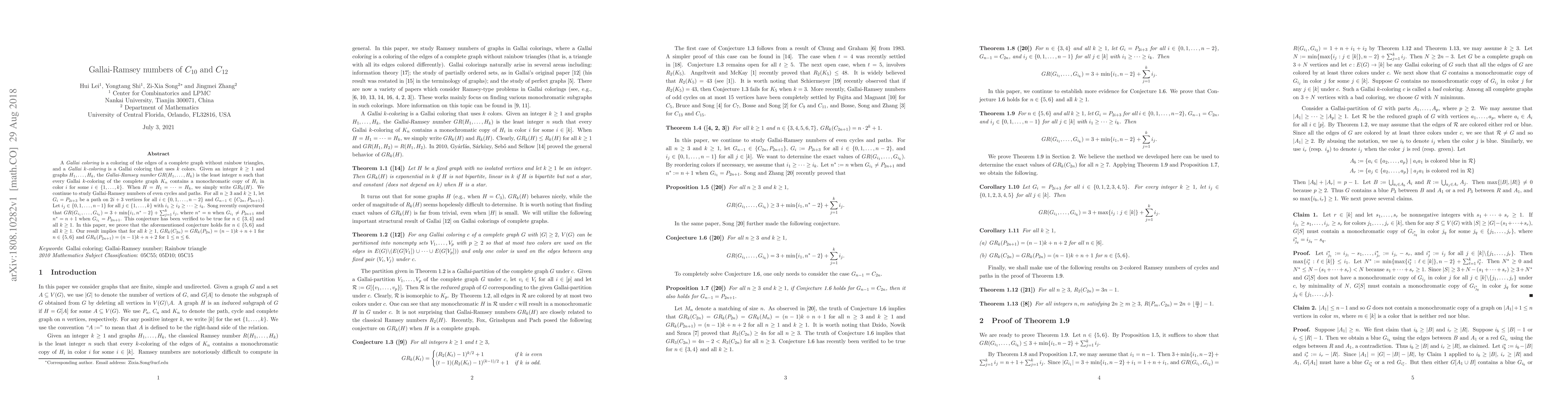 This paper proves Song's conjecture for Gallai-Ramsey numbers of even cycles $C_{10}$ and $C_{12}$, and paths $P_{2n+1}$ for $n \in \{5, 6\}$. It establishes that $GR_k(C_{10}) = GR_k(C_{12}) = (n-1)k+n+1$ and $GR_k(P_{11}) = GR_k(P_{13}) = (n-1)k+n+2$ for all $k \ge 1$.