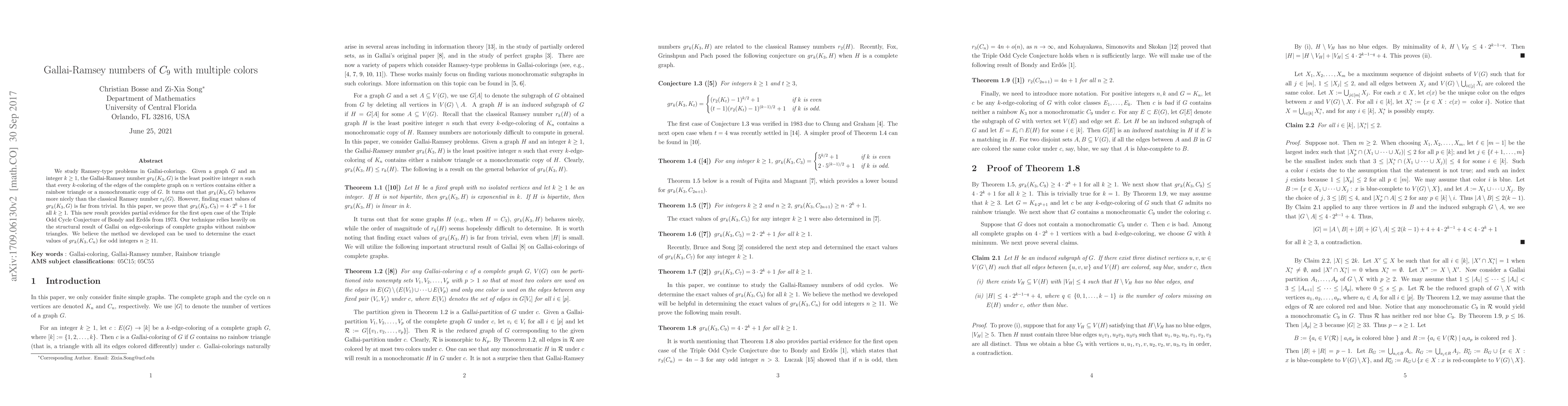 This paper determines the Gallai-Ramsey number $gr_k(K_3, C_9)$ to be $4\cdot 2^k+1$ for all $k\ge1$, providing a significant result towards the Triple Odd Cycle Conjecture. The method used is based on Gallai's structural results on edge-colorings.