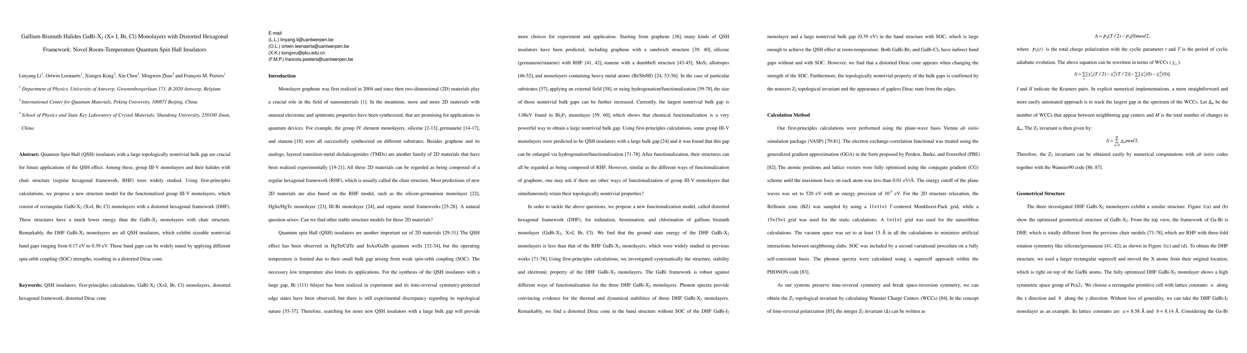 This paper proposes novel GaBi-X2 (X=I, Br, Cl) monolayers with a distorted hexagonal framework that exhibit quantum spin hall insulator properties at room temperature, featuring sizeable topologically nontrivial band gaps tunable by spin-orbit coupling. These materials could be promising for future quantum spin hall effect applications.