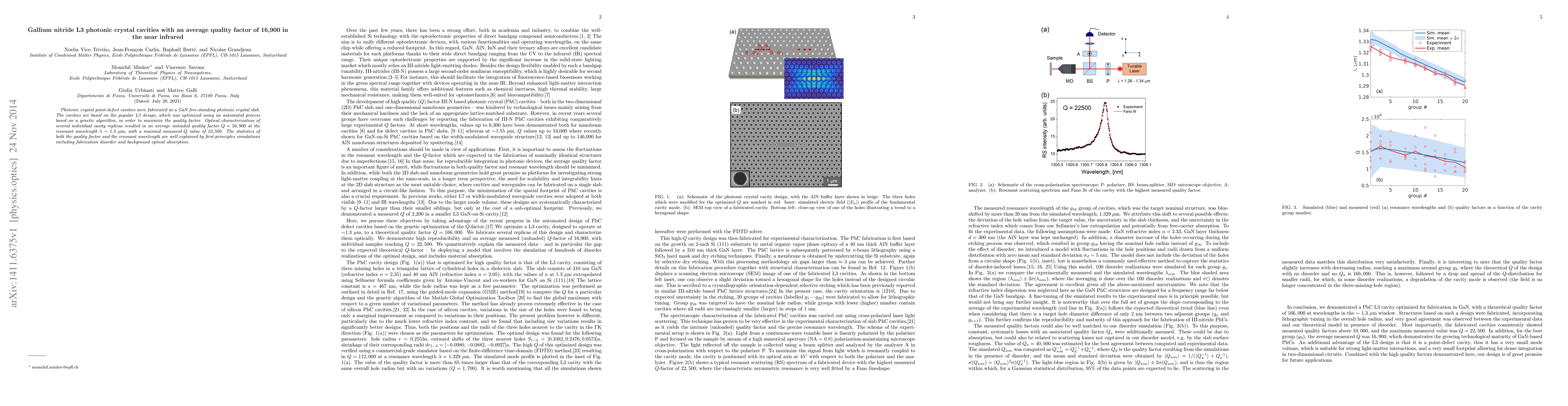 Researchers fabricated gallium nitride photonic crystal cavities with an average quality factor of 16,900 in the near infrared, surpassing previous records.