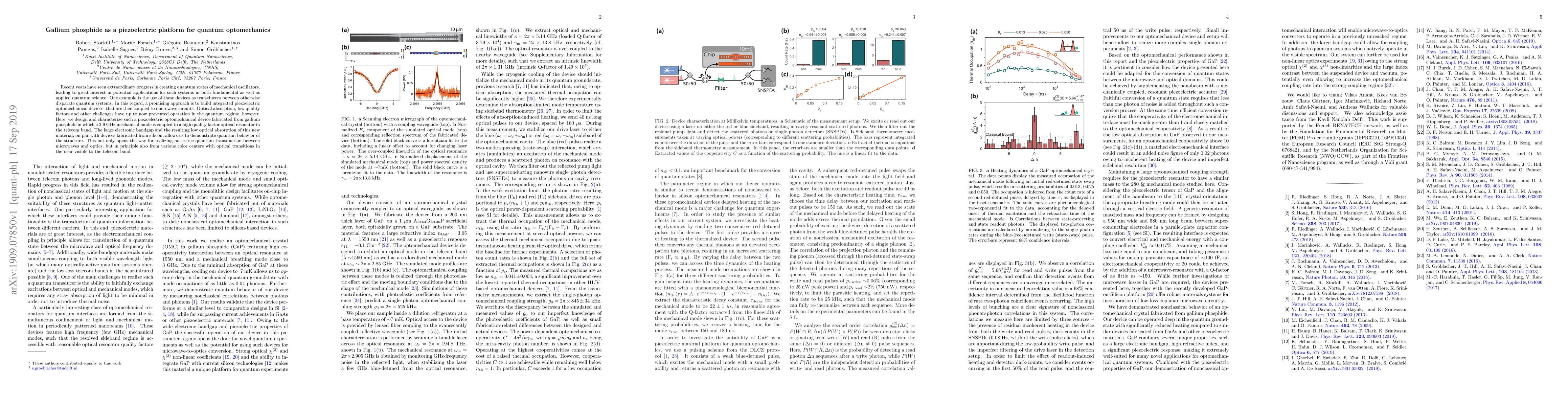 Recent years have seen extraordinary progress in creating quantum states of mechanical oscillators, leading to great interest in potential applications for such systems in both fundamental as well as applied quantum science. One example is the use of these devices as transducers between otherwise disparate quantum systems. In this regard, a promising approach is to build integrated piezoelectric optomechanical devices, that are then coupled to microwave circuits. Optical absorption, low quality factors and other challenges have up to now prevented operation in the quantum regime, however. Here, we design and characterize such a piezoelectric optomechanical device fabricated from gallium phosphide in which a 2.9~GHz mechanical mode is coupled to a high quality factor optical resonator in the telecom band. The large electronic bandgap and the resulting low optical absorption of this new material, on par with devices fabricated from silicon, allows us to demonstrate quantum behavior of the structure. This not only opens the way for realizing noise-free quantum transduction between microwaves and optics, but in principle also from various color centers with optical transitions in the near visible to the telecom band.