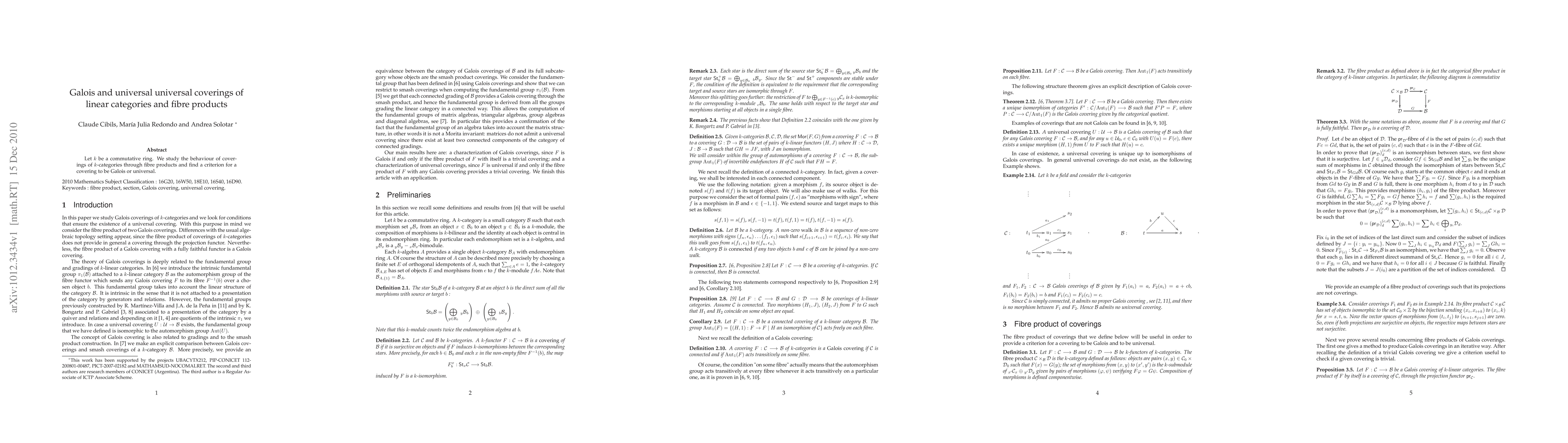 Summary: This paper investigates coverings of $k$-categories via fibre products and establishes criteria to determine when these coverings are Galois or universal. The focus is on the structural properties that define these types of coverings in linear categorical frameworks.