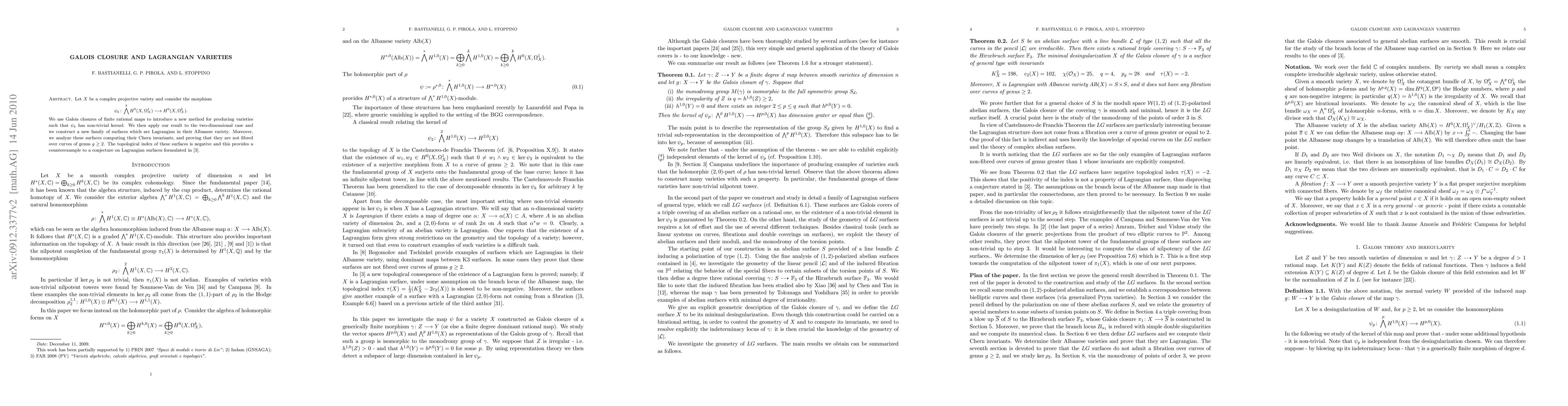 We use Galois closures of finite rational maps between complex projective varieties to introduce a new method for producing varieties such that the holomorphic part of the cup product map has non-trivial kernel. We then apply our result to the two-dimensional case and we construct a new family of surfaces which are Lagrangian in their Albanese variety. Moreover, we analyze these surfaces computing their Chern invariants, and proving that they are not fibred over curves of genus greater than one.