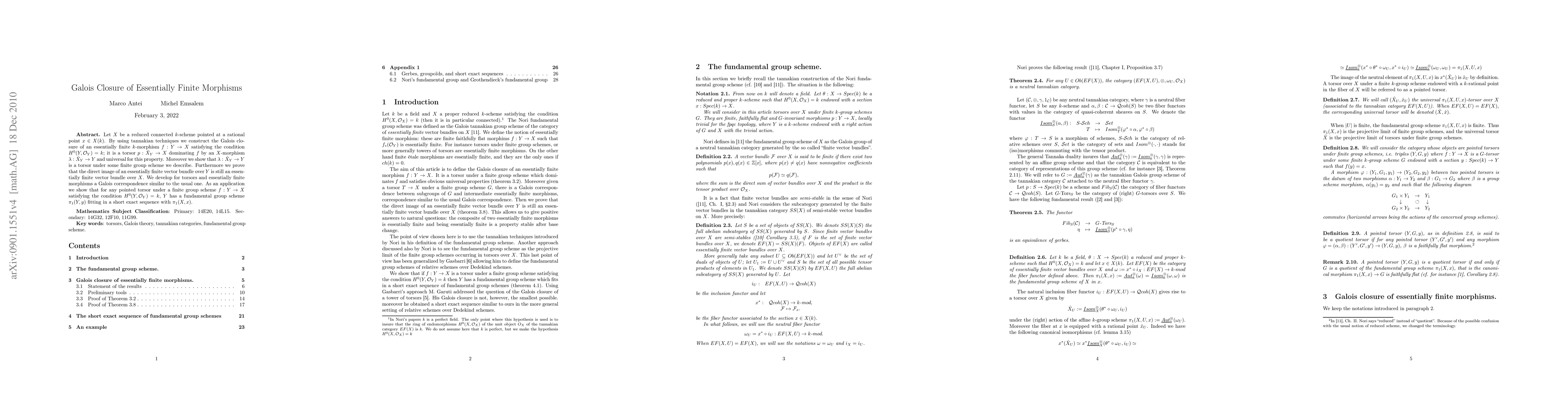 Let $X$ be a reduced connected $k$-scheme pointed at a rational point $x \in X(k)$. By using tannakian techniques we construct the Galois closure of an essentially finite $k$-morphism $f:Y\to X$ satisfying the condition $H^0(Y,\mathcal{O}_Y)=k$; this Galois closure is a torsor $p:\hat{X}_Y\to X$ dominating $f$ by an $X$-morphism $\lambda:\hat{X}_Y\to Y$ and universal for this property. Moreover we show that $\lambda:\hat{X}_Y\to Y$ is a torsor under some finite group scheme we describe. Furthermore we prove that the direct image of an essentially finite vector bundle over $Y$ is still an essentially finite vector bundle over $X$. We develop for torsors and essentially finite morphisms a Galois correspondence similar to the usual one. As an application we show that for any pointed torsor $f:Y \to X$ under a finite group scheme satisfying the condition $H^0(Y,\mathcal{O}_Y)=k$, $Y$ has a fundamental group scheme $\pi_1 (Y,y)$ fitting in a short exact sequence with $\pi_1 (X,x)$.