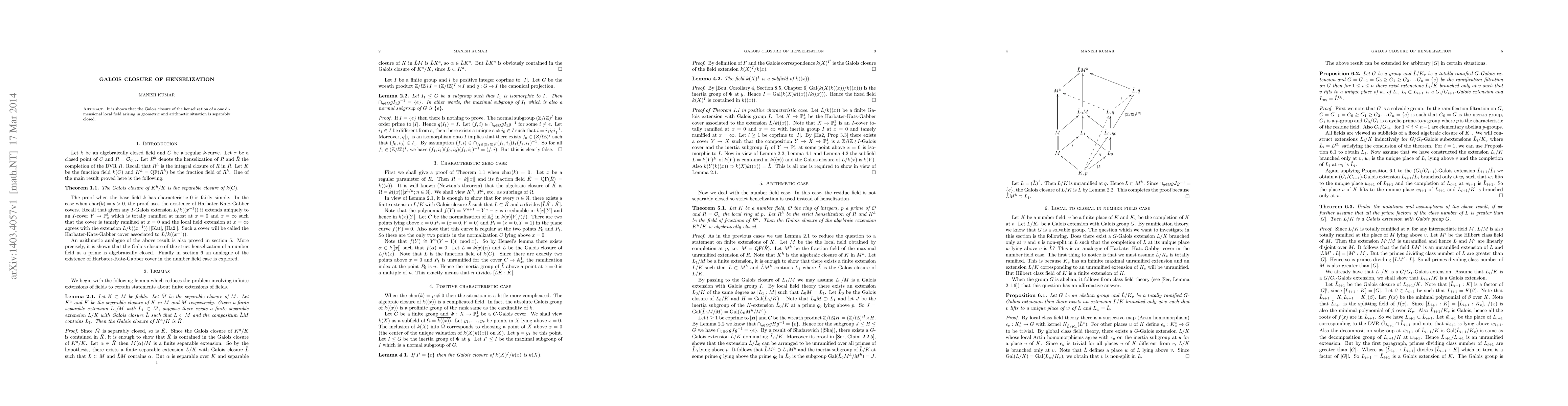 Summary: The paper demonstrates that the Galois closure of the henselization of a one-dimensional local field in geometric and arithmetic contexts results in a separably closed field. This finding has implications for understanding the structure of such fields in algebraic geometry and number theory.