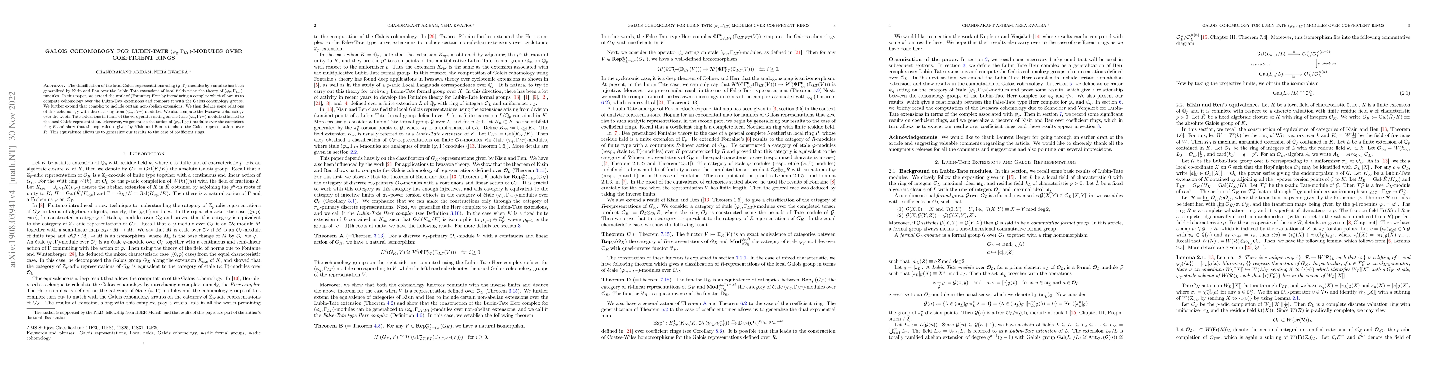 This paper extends Kisin and Ren's classification of local Galois representations using $(\varphi_q,\Gamma_{LT})$-modules over Lubin-Tate extensions by introducing a cohomology complex that computes Galois cohomology over these extensions and relates it to $(\psi_q,\Gamma_{LT})$-modules. It also generalizes the notion to coefficient rings, showing the equivalence of $(\varphi_q,\Gamma_{LT})$-modules extends to Galois representations over $R$.