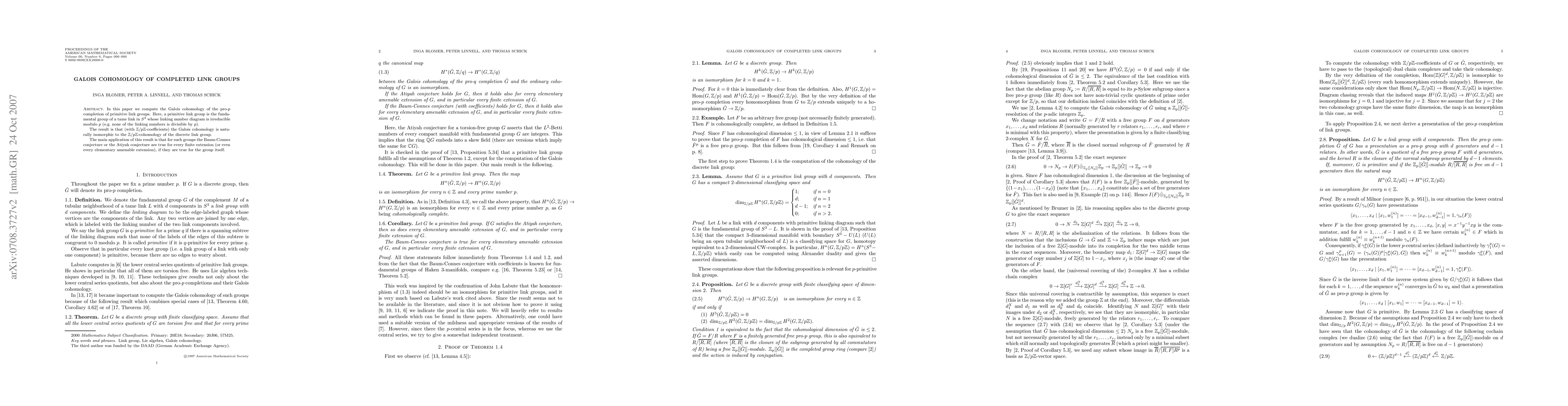 The paper computes the Galois cohomology of the pro-p completion of primitive link groups using Z/pZ-coefficients, establishing an isomorphism with the Z/pZ-cohomology of the discrete link group.