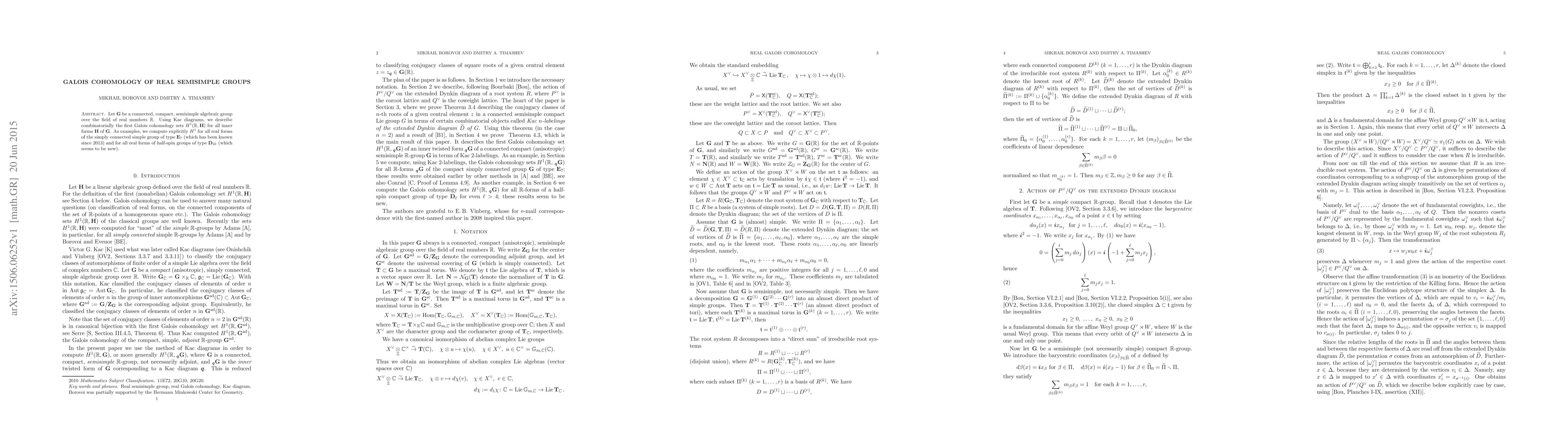 This paper explores the Galois cohomology of real semisimple groups using Kac diagrams to describe H^1(R,H) for inner forms H of a given group G. It provides explicit computations for H^1 of real forms of E_7 and half-spin groups of type D_{2k}, presenting new results for the latter.