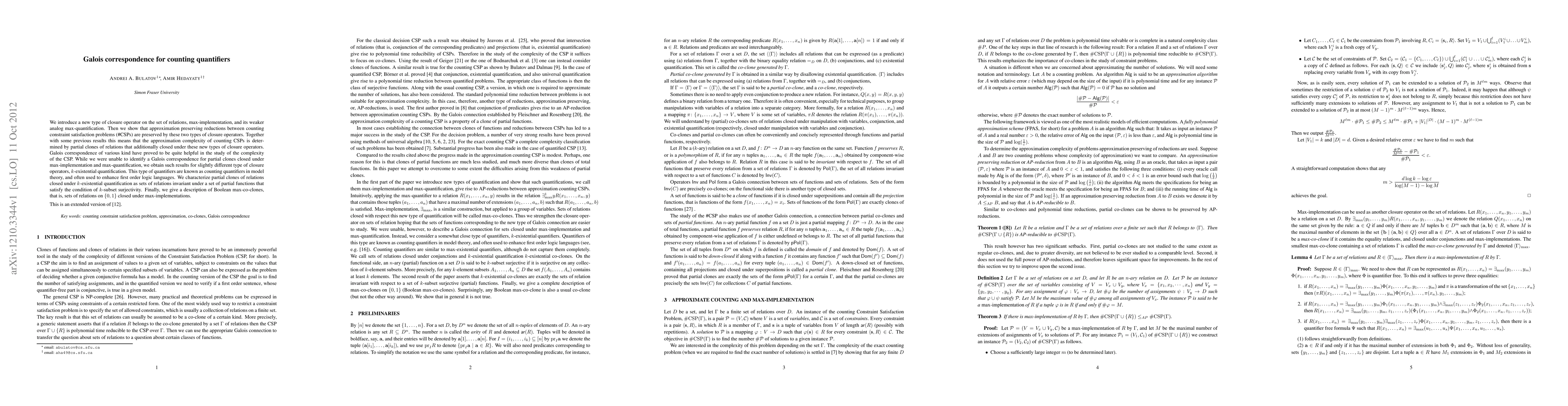 This paper introduces max-implementation and max-quantification as new closure operators on relations, demonstrating that approximation preserving reductions in counting CSPs are preserved by these operators. It establishes a Galois correspondence for k-existential quantification, characterizing partial clones of relations closed under this quantifier, and describes Boolean max-co-clones.