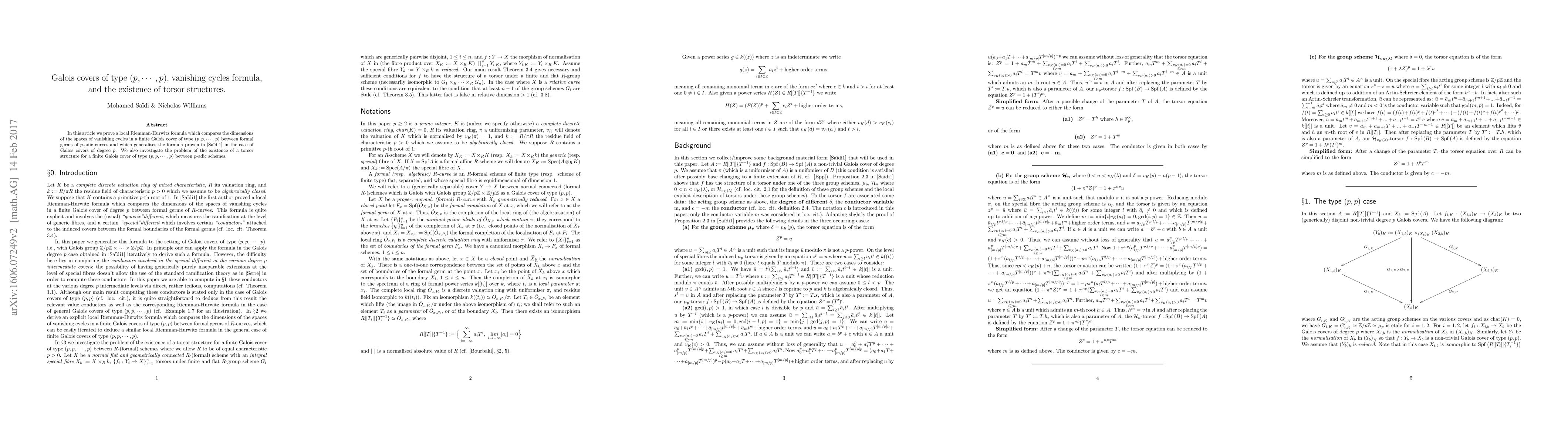 In this article we prove a local Riemman-Hurwitz formula which compares the dimensions of the spaces of vanishing cycles in a finite Galois cover of type (p,p,...,p) between formal germs of p-adic curves and which generalises the formula proven by the first author in the case of Galois covers of degree p. We also investigate the problem of the existence of a torsor structure for a finite Galois cover of type (p,p,...,p) between p-adic schemes.