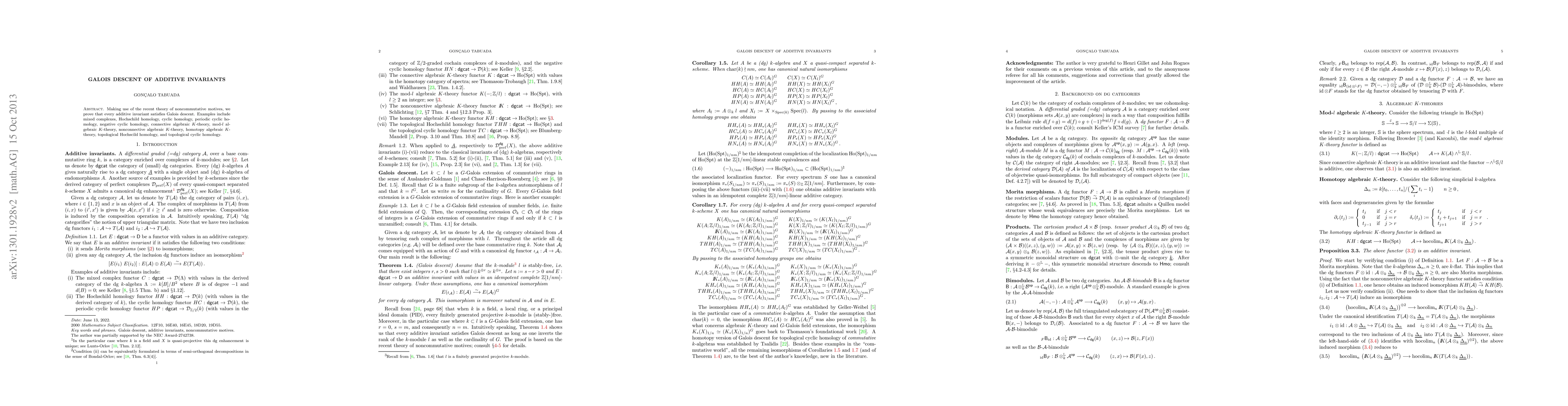 The work extends the theory of noncommutative motives to prove Galois descent for a wide range of additive invariants, offering a novel perspective on algebraic K-theory.