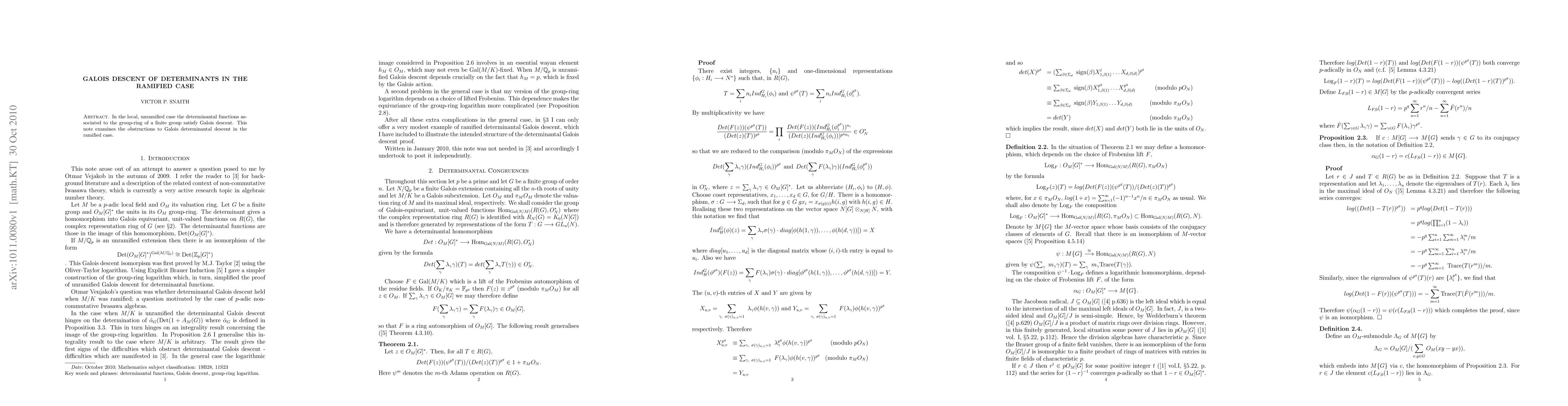 The paper examines obstructions to Galois determinantal descent in the ramified case, building on the local, unramified case where determinantal functions satisfy Galois descent.