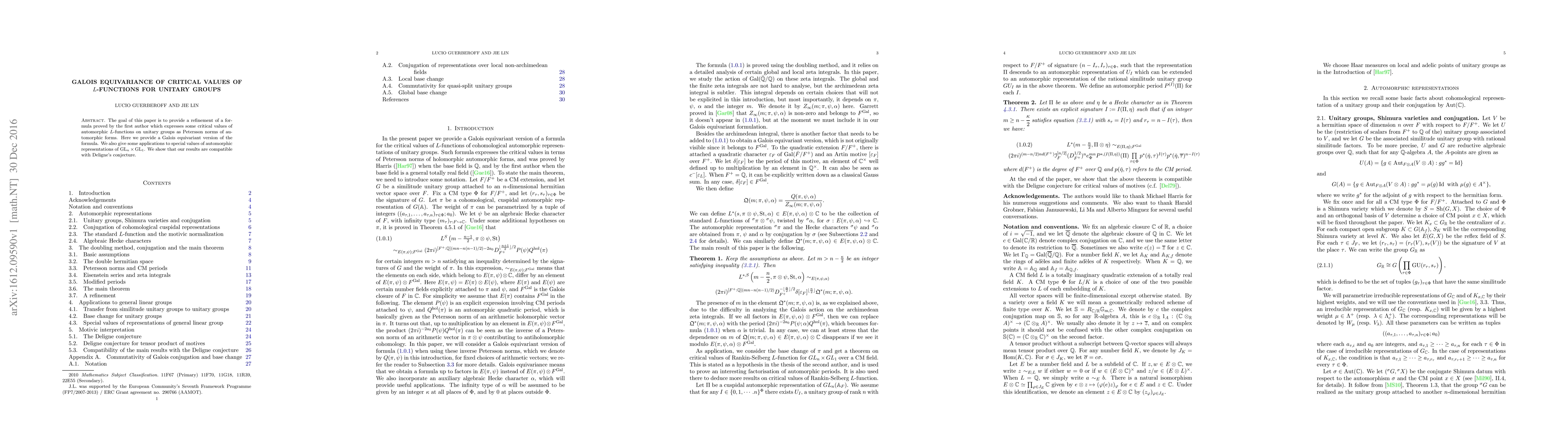 The goal of this paper is to provide a refinement of a formula proved by the first author which expresses some critical values of automorphic $L$-functions on unitary groups as Petersson norms of automorphic forms. Here we provide a Galois equivariant version of the formula. We also give some applications to special values of automorphic representations of $\GL_{n}\times\GL_{1}$. We show that our results are compatible with Deligne's conjecture.