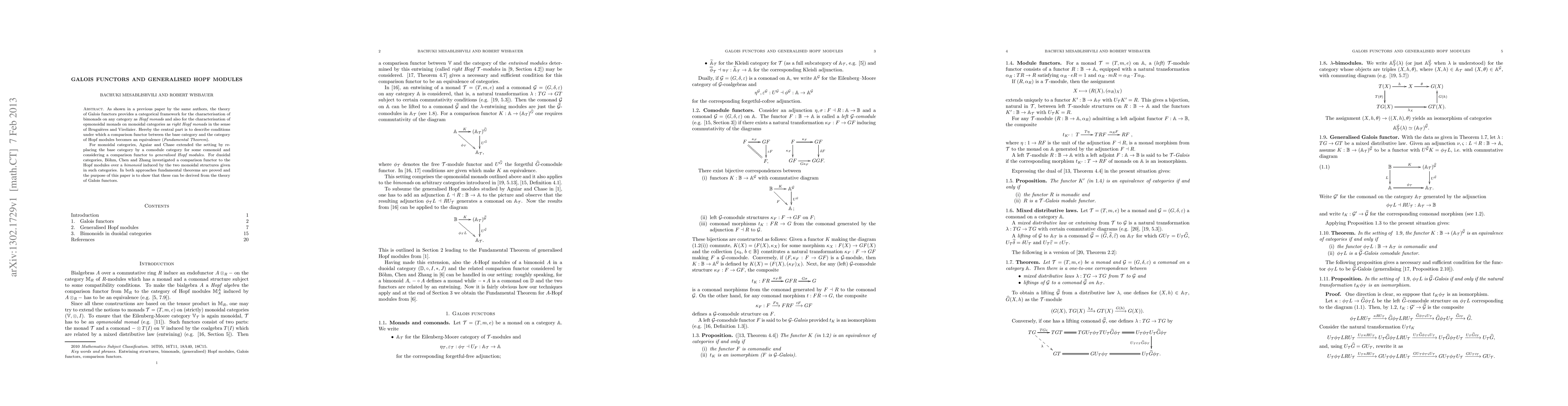 This paper applies the theory of Galois functors to derive fundamental theorems previously established for comparing monoidal and duoidal categories with Hopf modules and generalised Hopf modules, demonstrating the broader applicability of the Galois functor framework in categorical monad theory.