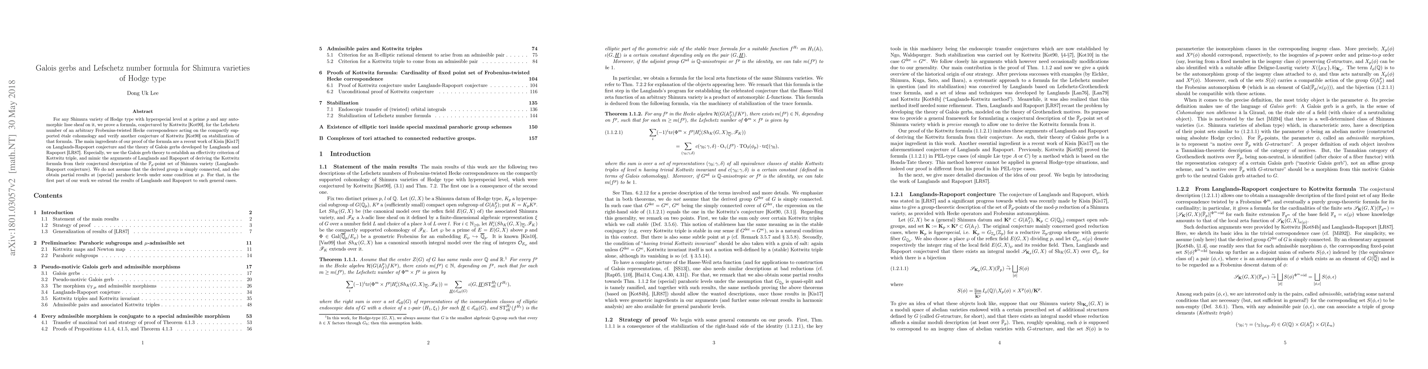 For any Shimura variety of Hodge type with hyperspecial level at a prime $p$ and a lisse sheaf on it, we prove a formula, conjectured by Kottwitz \cite{Kottwitz90}, for the Lefschetz number of an arbitrary Frobenius-twisted Hecke correspondence acting on the compactly supported \'etale cohomology and verify another conjecture of Kottwitz \cite{Kottwitz90} on the stabilization of that formula. The main ingredients of our proof of the formula are a recent work of Kisin \cite{Kisin17} on Langlands-Rapoport conjecture and the theory of Galois gerbs developed by Langlands and Rapoport \cite{LR87}. Especially, we use the Galois gerb theory to establish an effectivity criterion of Kottwitz triple, and mimic the arguments of Langlands and Rapoport of deriving the Kottwitz formula from their conjectural description of the $\Fpb$-point set of Shimura variety (Langlands-Rapoport conjecture). We do not assume that the derived group is simply connected, and also obtain partial results at (special) parahoric levels under some condition at $p$. For that, in the first part of our work we extend the results of Langlands and Rapoport to such general cases.