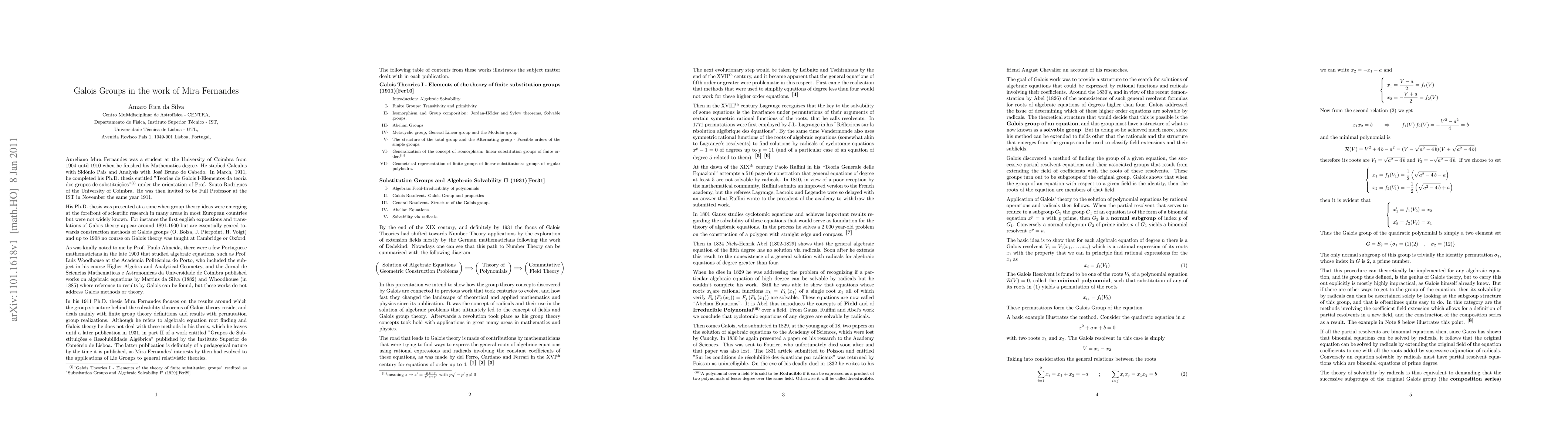 In connection to a review of the writings on Galois Theory of the Portuguese mathematician Aureliano Mira Fernandes at turn of the XXth century a brief narrative is presented on how the group theory concepts discovered by Galois are connected to previous work that took centuries to evolve, and how fast they changed the landscape of theoretical and applied mathematics and physics since its publication. From the conference "Mira Fernandes and his age - An historical Conference in honour of Aureliano de Mira Fernandes (1884-1958)", IST Lisbon, June 2009