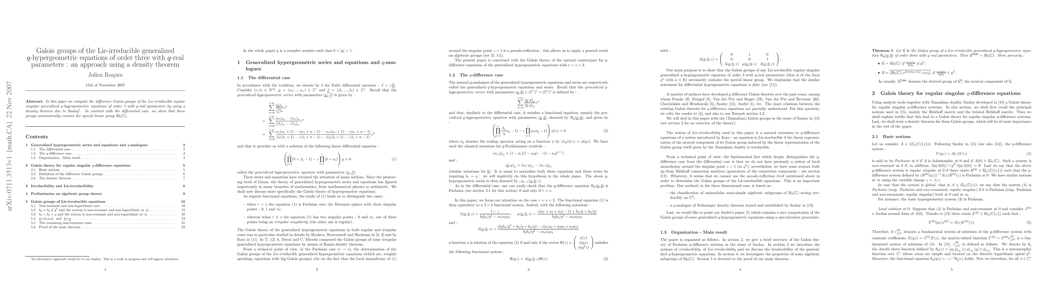 This paper computes the difference Galois groups of Lie-irreducible generalized q-hypergeometric equations of order 3 with q-real parameters, finding that they automatically contain the special linear group SL(3,C).