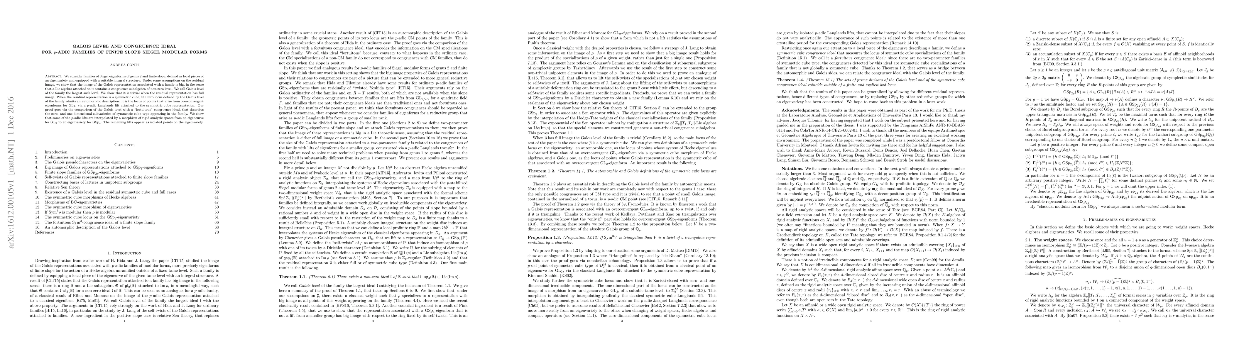 The paper employs the theory of $p$-adic families of Siegel eigenforms of genus 2 with finite slope, utilizing eigenvarieties and integral structures. It examines the Galois representations associated with these families under specific assumptions on the residual image.