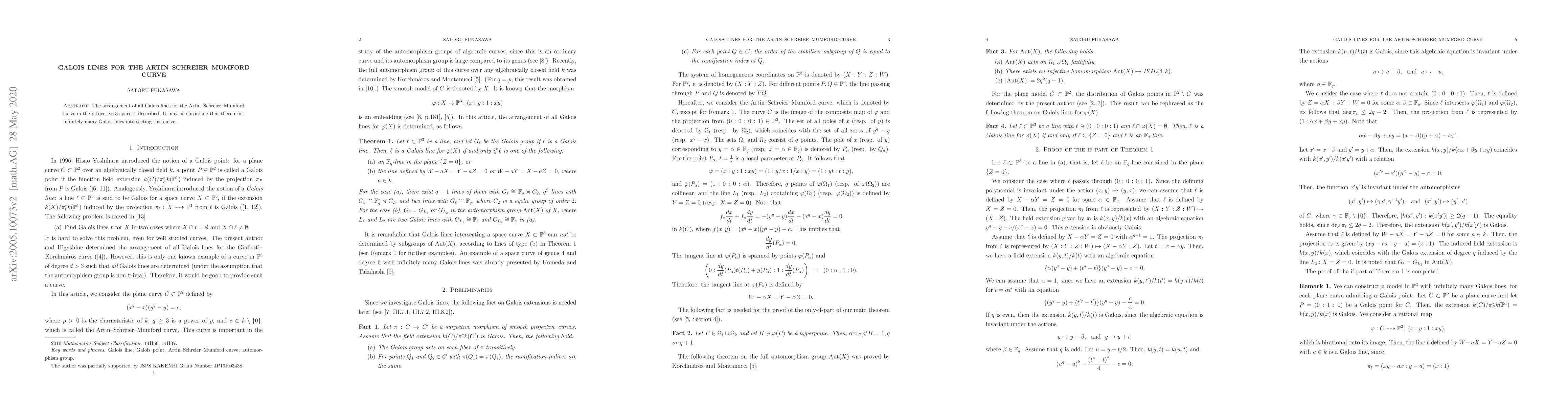 Summary: This paper explores the arrangement of Galois lines for the Artin-Schreier-Mumford curve in projective 3-space, revealing the existence of infinitely many such lines intersecting the curve, a surprising discovery.