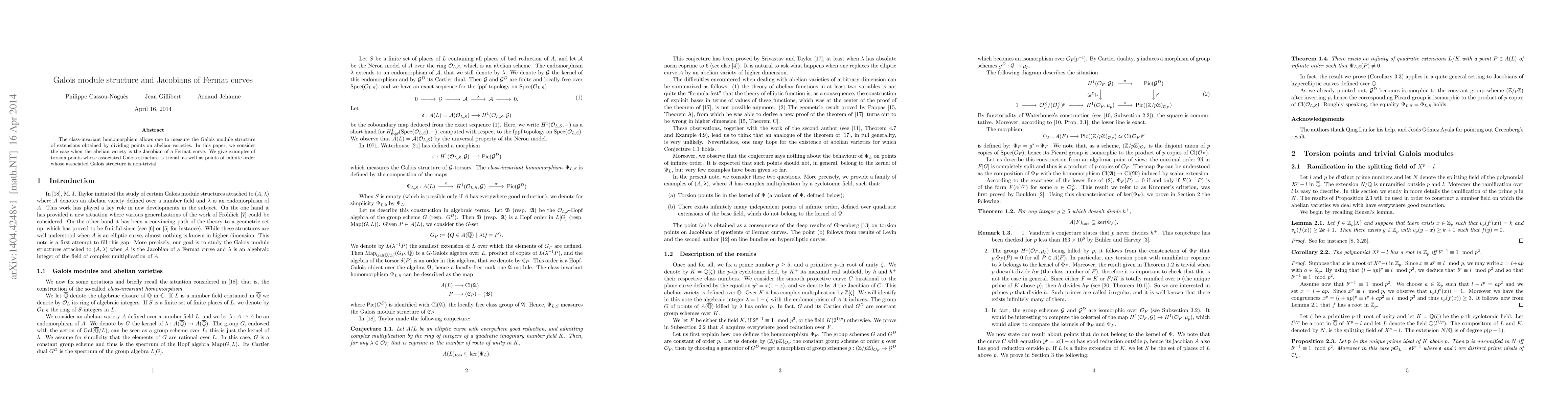 The class-invariant homomorphism allows one to measure the Galois module structure of extensions obtained by dividing points on abelian varieties. In this paper, we consider the case when the abelian variety is the Jacobian of a Fermat curve. We give examples of torsion points whose associated Galois structure is trivial, as well as points of infinite order whose associated Galois structure is non-trivial.