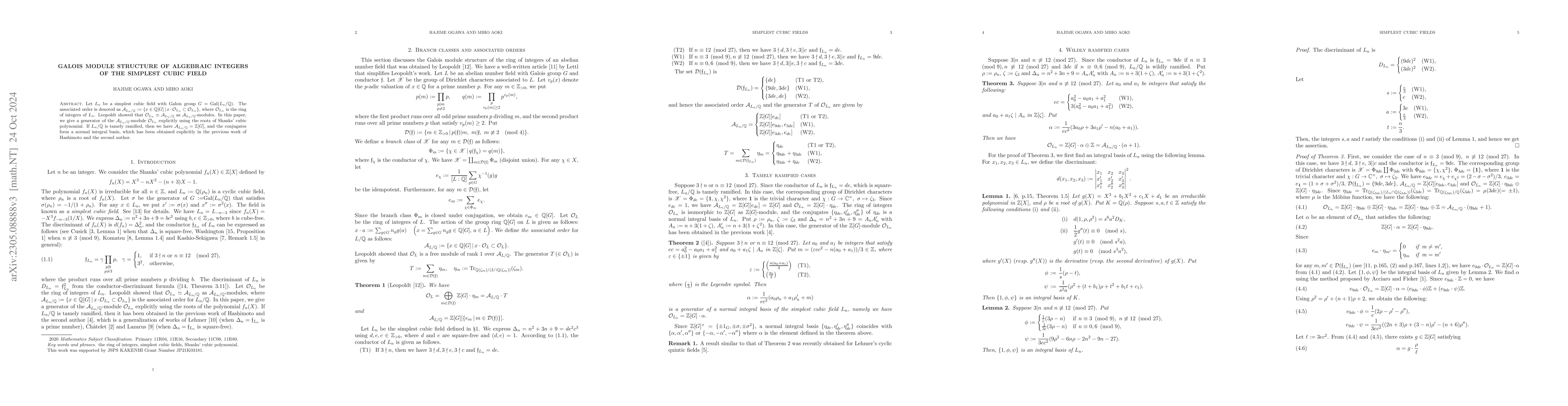 This paper investigates the Galois module structure of the algebraic integers in simplest cubic fields \(L_n\). It explicitly constructs a generator for the ring of integers as an \({\cal A}_{L_n/\mathbb Q}\)-module using Shanks' cubic polynomial roots, providing insight into the module's structure under tame ramification.