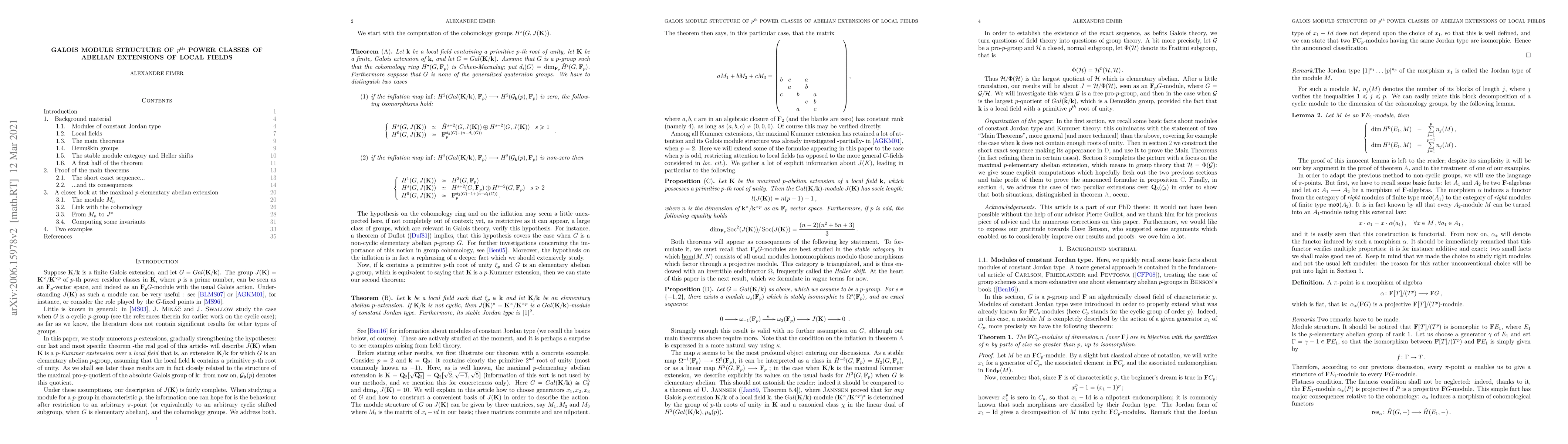 In this paper, we describe the Galois module structure of $J=\mathbf{K}^{\times}/\mathbf{K}^{\times p}$, where $\mathbf{K}$ is an extension of a local field $\mathbf{k}$ containing a primitive $p$-th root of unity: for instance, if $\mathbf{K}/\mathbf{k}$ is a $p$-elementary abelian extension, we prove that $J$ is a module of constant Jordan type, with stable Jordan type $[1]^2$, which, in a way, extends the result of J. Min\'a\v{c} and J. Swallow. Also, we take profit from our proof by computing some invariants, which were previously introduced by A. Adem, W. Gao, D. B. Karageuzian and J. Min\'a\v{c} only for $p=2$.
