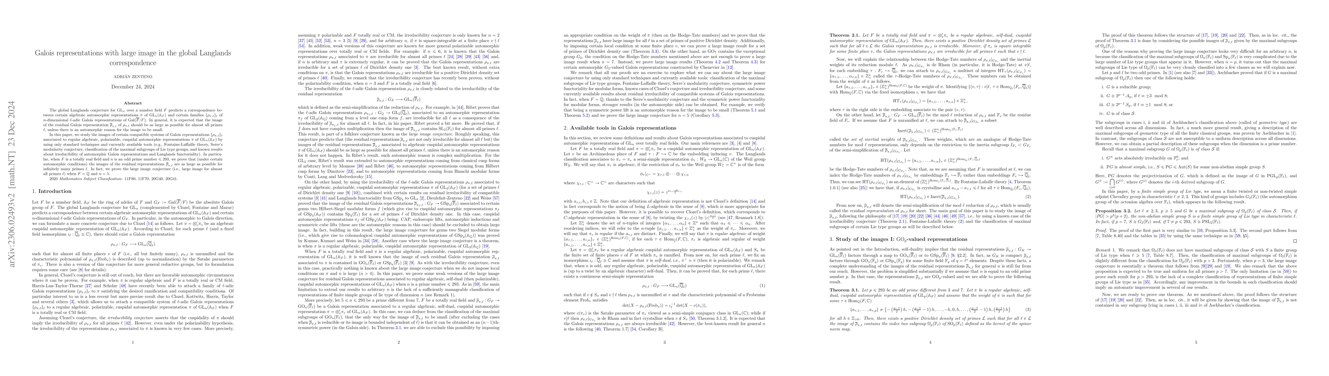 This paper investigates the images of Galois representations associated with certain automorphic representations in the global Langlands correspondence, proving that under specific conditions, the images of the residual Galois representations are maximal for infinitely many primes. The study confirms the large image conjecture for $\text{GL}_5$ over $\mathbb{Q}$.