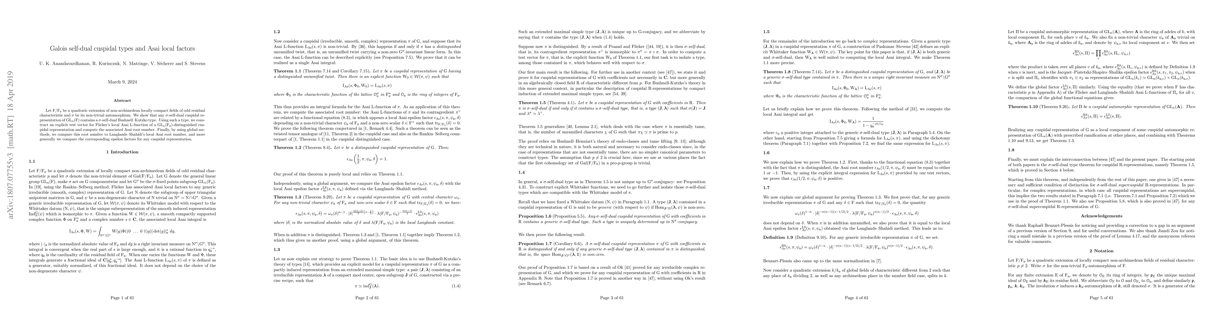 This paper demonstrates that $\sigma$-self-dual cuspidal representations of ${\rm GL}_n(F)$ contain $\sigma$-self-dual Bushnell-Kutzko types, constructs a test vector for Flicker's local Asai $L$-function, and computes the associated Asai root number, comparing it globally to Langlands-Shahidi's local Asai root number and epsilon factors.