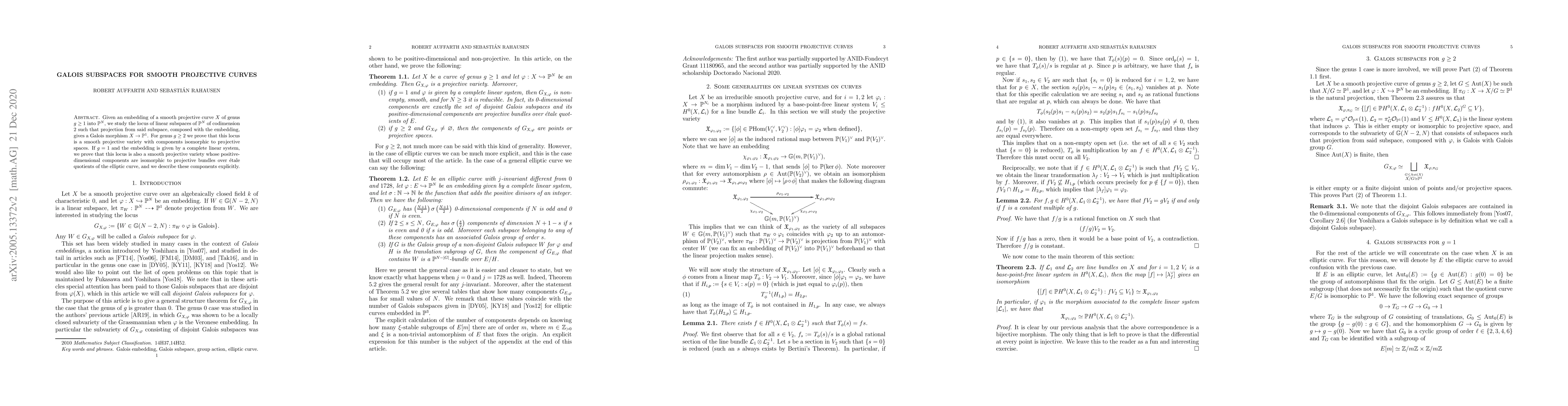 The paper studies the locus of linear subspaces in projective space that give a Galois morphism when projected from them, focusing on smooth projective curves with genus g>=1.