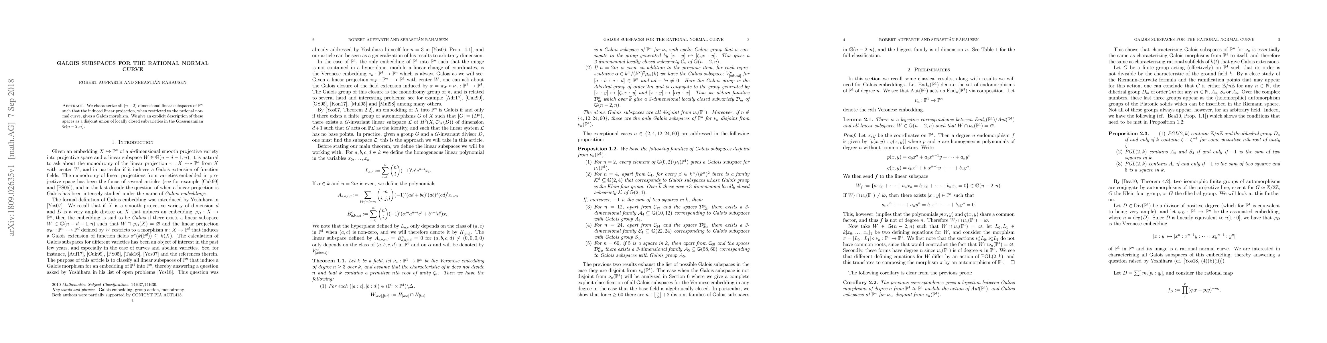 This paper identifies all $(n-2)$-dimensional linear subspaces of $\mathbb{P}^{n}$ that induce Galois morphisms when projected onto the rational normal curve, providing an explicit description of these subspaces as a disjoint union of subvarieties in $\mathbb{G}(n-2,n)$.