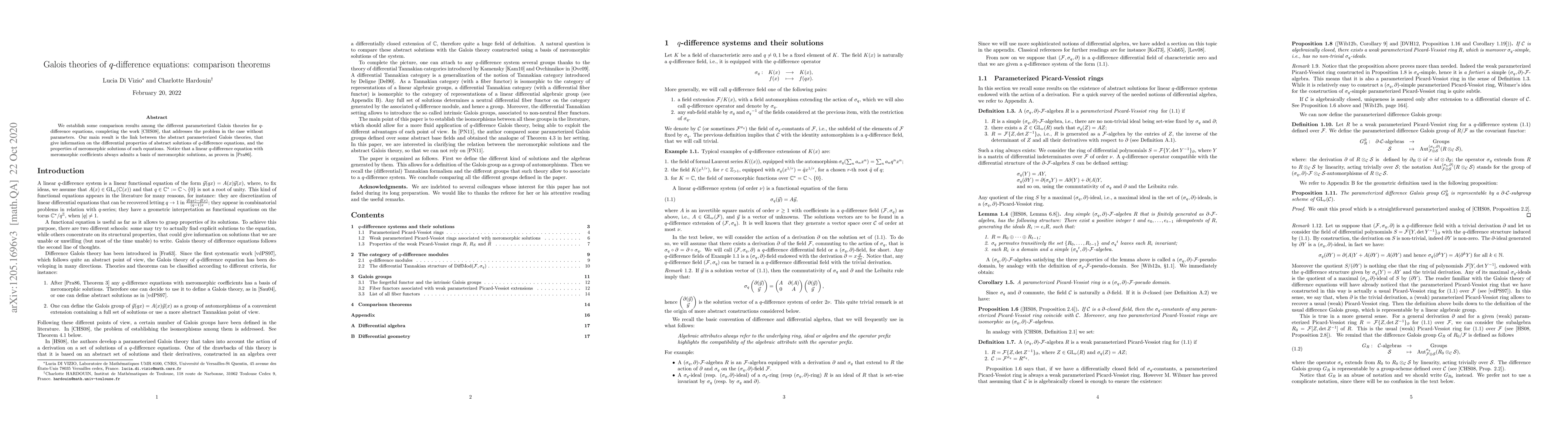 This paper establishes comparison results among various parameterized Galois theories for $q$-difference equations, extending previous work by CHatzidakis, Hardouin, and Singer. The main result links abstract parameterized Galois theories with the properties of meromorphic solutions of $q$-difference equations.
